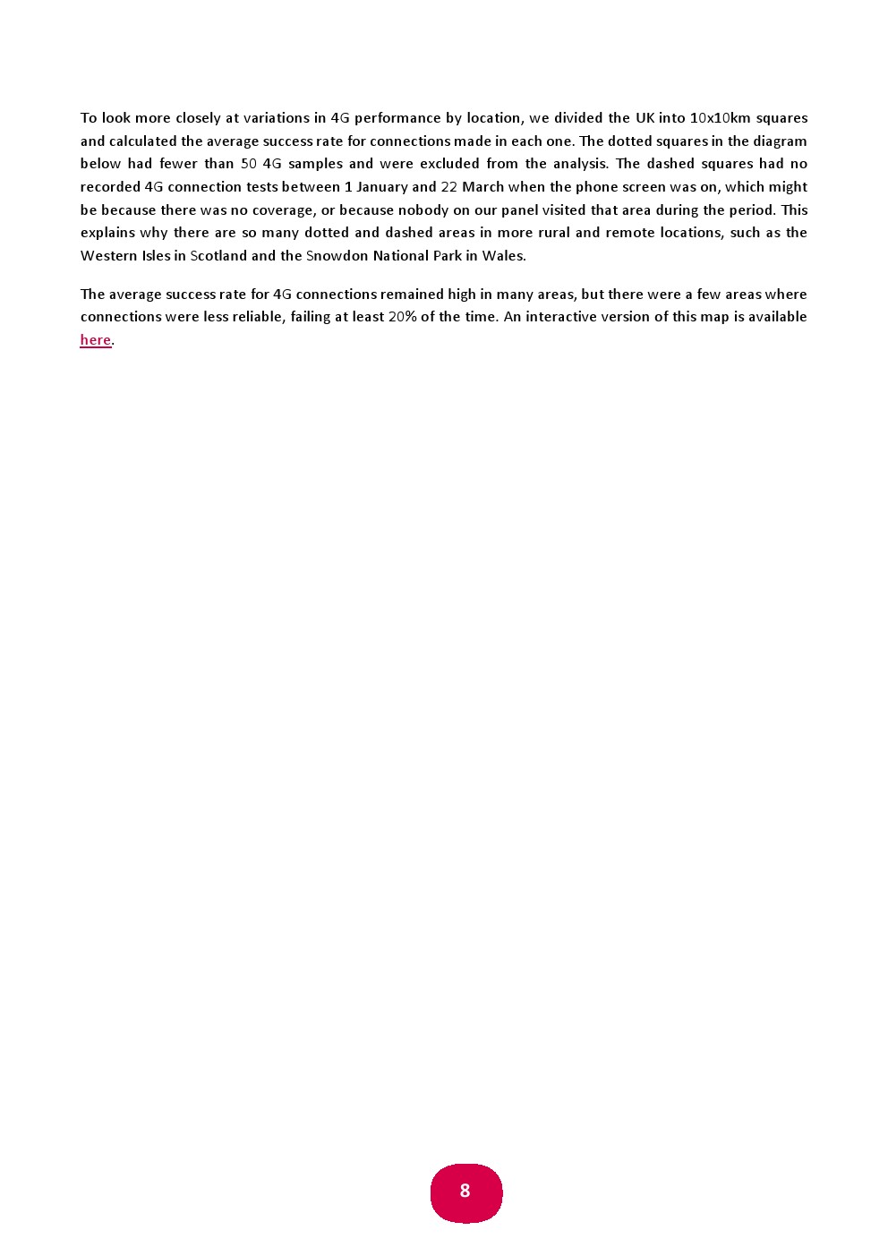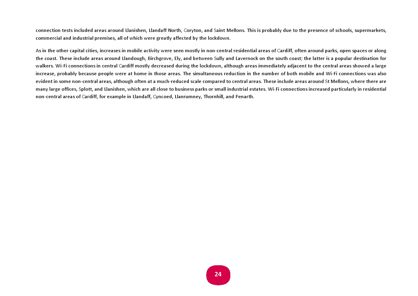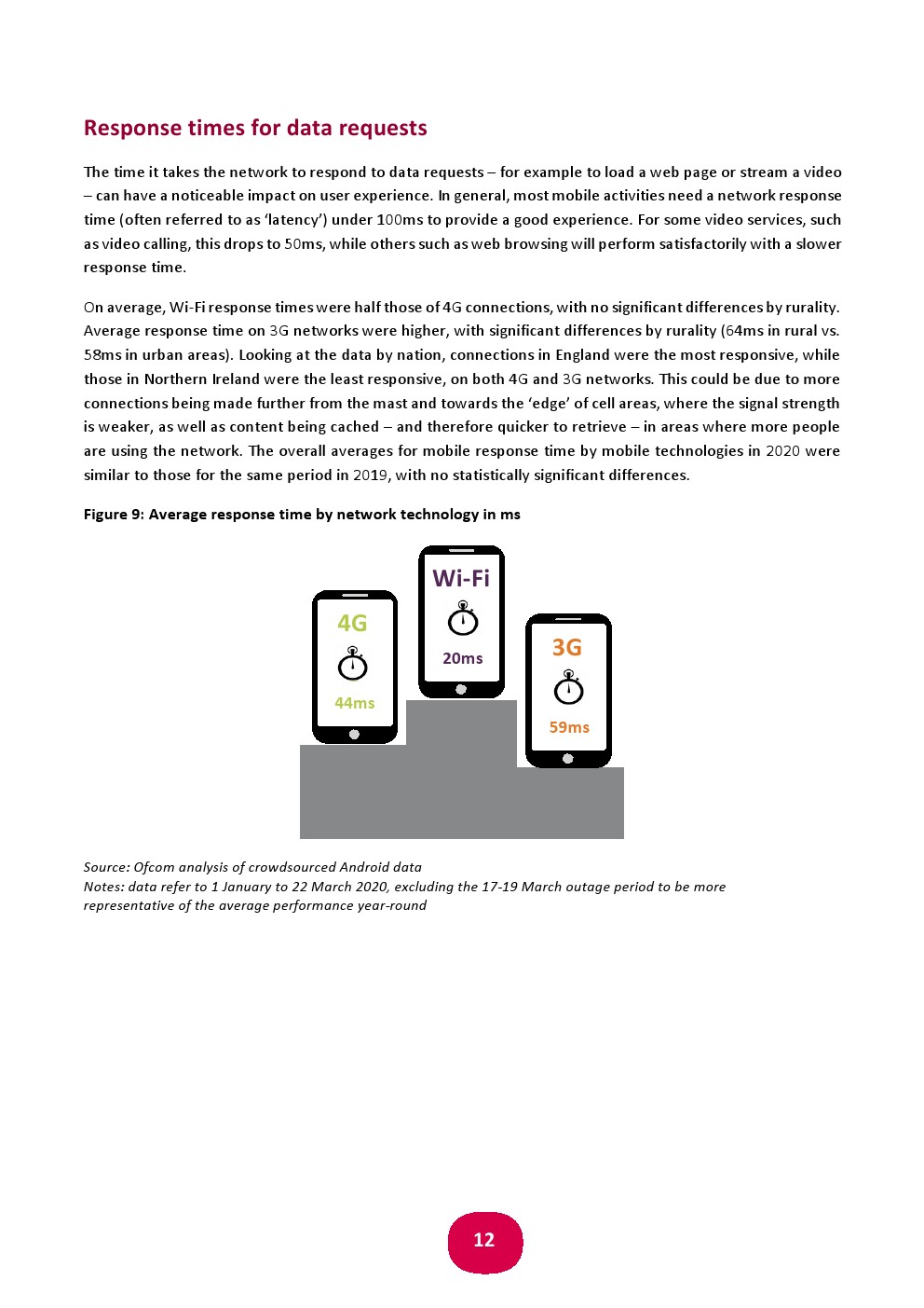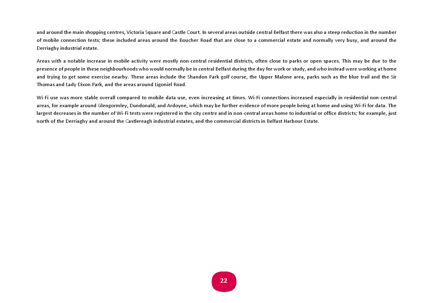 - 封锁还导致英国首都城市中心地区的移动设备使用量大幅减少,因为人们不再通勤到这些地区,转而在家工作。这些人更可能通过Wi-Fi连接到网络。