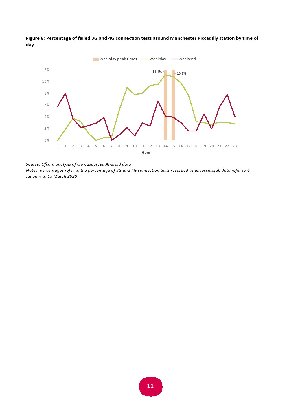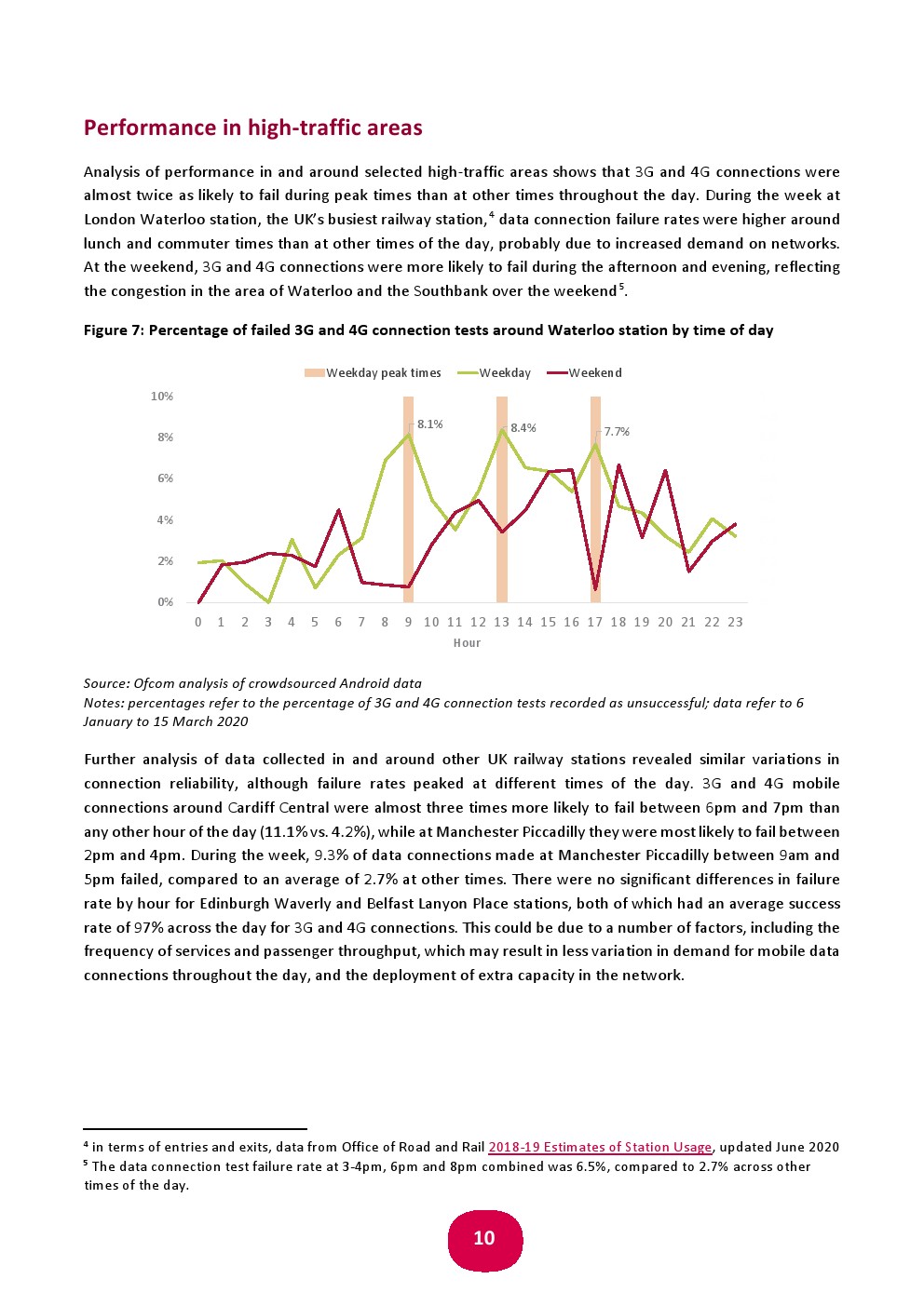 - 对高流量地区的性能分析显示,3G和4G连接在高峰期出现故障的可能性几乎是其他时间的两倍。