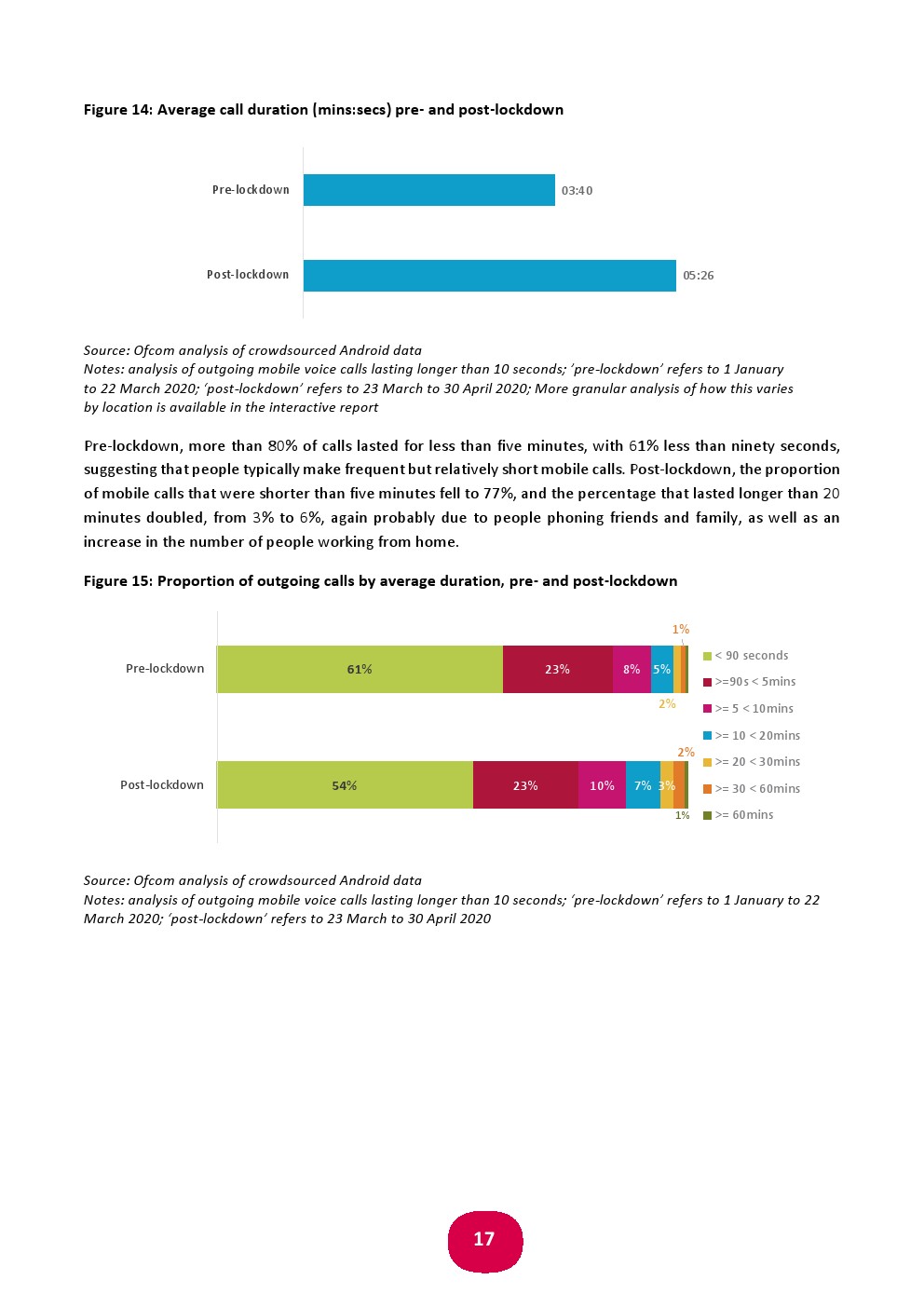 - 在封锁的早期阶段,移动电话的平均时长增加了近两分钟。