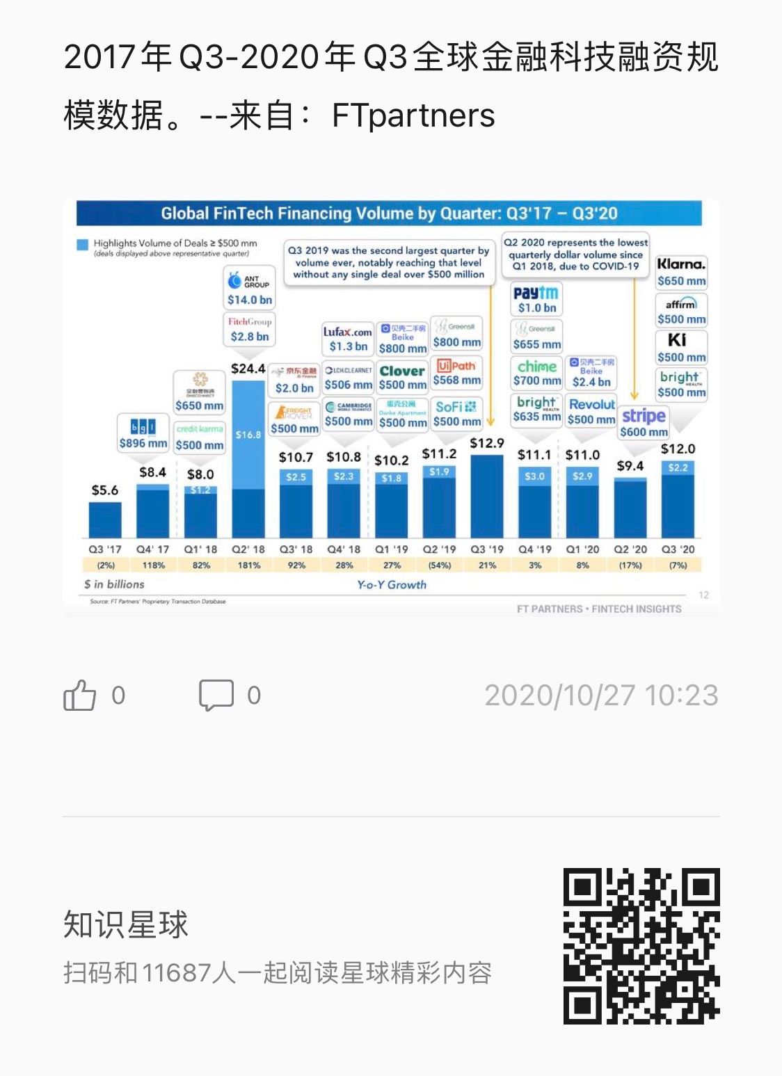 2017年Q3-2020年Q3全球金融科技融资规模数据 更多阅读:2017年Q3-2020年Q3全球金融科技融资规模及增长率(附原数据表) 2020年Q1-Q3按行业分布全球金融科技融资规模(附原数据表)2010年-2020年Q3全球金融科技融资规模情况(附原数据表)CFTE:2021年金融科技工作报告金融科技推动中国绿色金融发展:案例与展望MEDICI:2019 年上半年全球金融科技投资成交1068 笔融资交易 共筹集 220.4 亿美元十字路口:中国金融科技的新篇章世界经济论坛:推动创新——缩小金融科技资金缺口Shifted:金融科技开放4.0PitchBook:2023年第一季度企业金融科技报告2015年-2020年Q3按地区分布的全球金融科技融资额规模(附原数据表) 金融科技的20年演变澳洲会计师公会:企业金融科技应用调查报告–中国内地Michael Page:2018年中国金融科技就业状况中国人民银行:金融科技(FinTech)发展规划(2019-2021年)–附全文