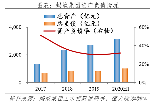 保险业务的经营主体是蚂蚁胜信(上海)信息技术和国泰财产保险,截至2020年6月底,蚂蚁集团负债中保险合同准备金达到15.4亿元,是2017年的1.3倍,2020年上半年蚂蚁胜信贡献净利润14.1亿元,占比6.4%。
