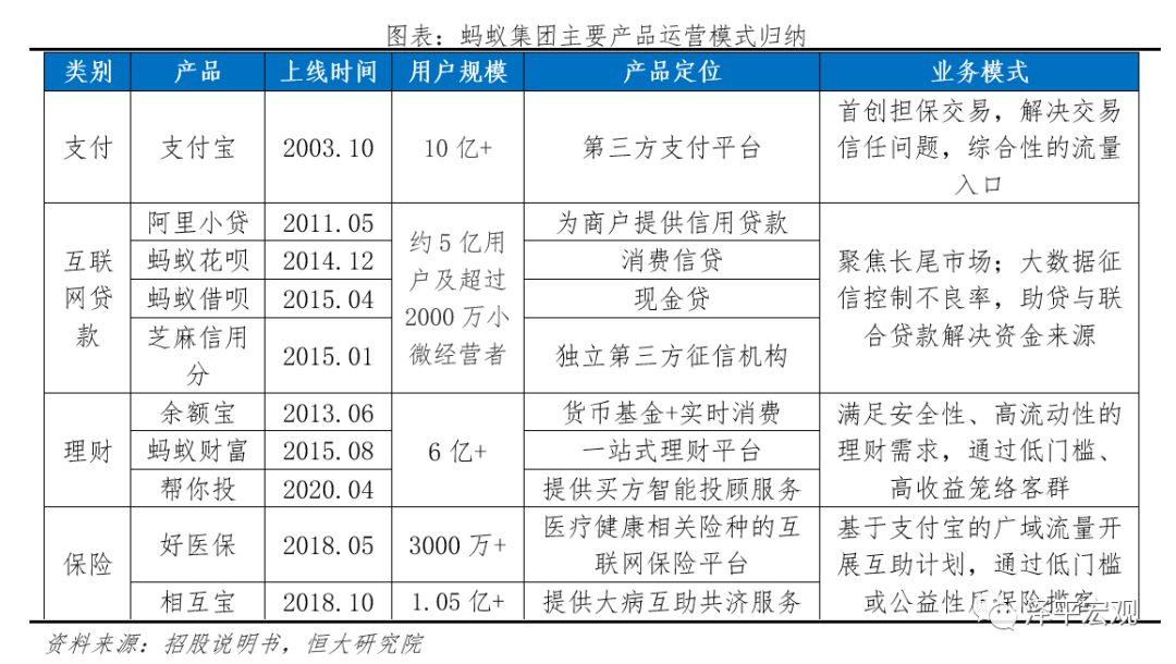 传统金融机构的产品设计往往是从自身能力、监管政策等约束性条件出发,“先有产品,再找客户”,而蚂蚁所拥有的互联网基因恰恰相反,以客户需求为立足点打造产品,突破传统束缚,再依托阿里多元交易场景,降低金融服务门槛,高度重视用户体验和产品运营,打造出支付宝、余额宝、花呗、借呗、相互宝等爆款产品。