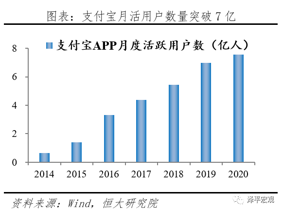 支付宝是第一个爆款产品,作为综合性的流量入口,叠加高频的支付场景为其他金融业务导流,以手续费及客户备付金利息收入为盈利方式。
