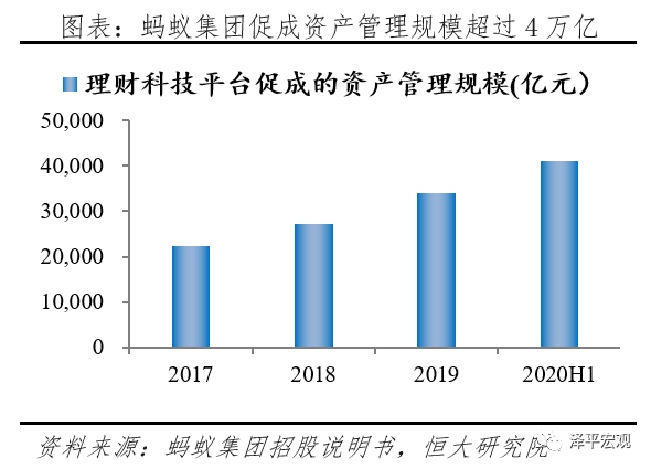 1)财富管理方面,三分之二由天弘以外基金管理。根据招股说明书披露,截至2020年6月,余额宝已经向24家第三方公募基金开放,理财平台促成的资产管理规模达到40986亿元,其中27460亿元由天弘以外的其他基金公司管理。