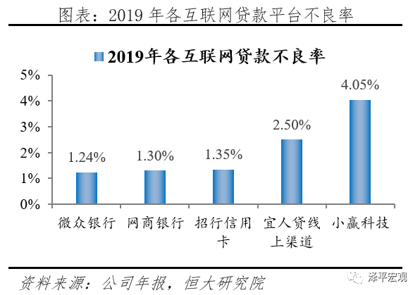 3)电商基因,交易大数据为风控保驾护航。对于长尾客群,央行征信系统作用有限,2015年芝麻信用分上线,基于用户的消费行为大数据,多方位综合性地对用户信用进行评级,2018年5月百行征信成立,是目前国内唯一获得个人征信牌照的机构,蚂蚁集团持股8%,加强了个人征信信息的共享。2019年网商银行的不良率为1.3%,低于招行信用卡1.35%不良率,更远低于其他互联网金融公司。