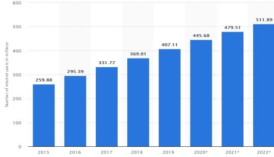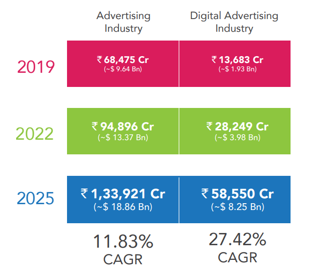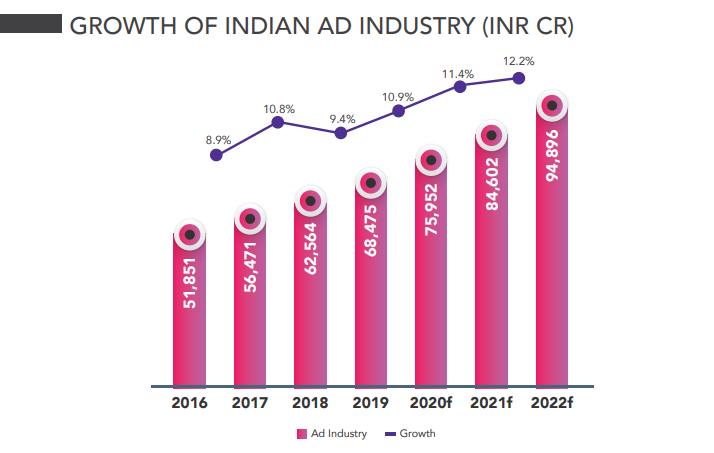 上图显示了印度去年在数字营销方面的支出以及未来几年的支出趋势,可以清楚地看到该行业的增长。