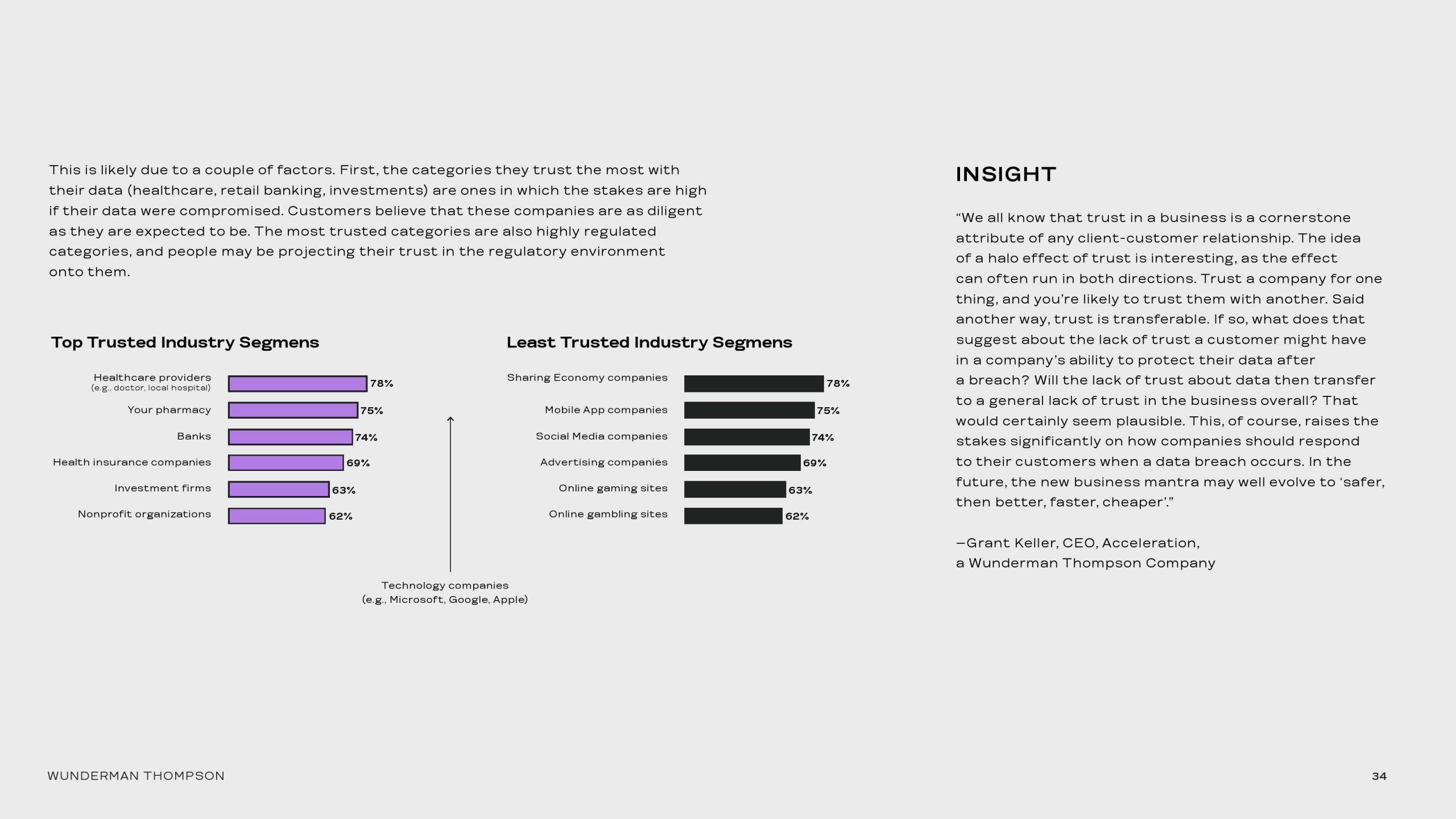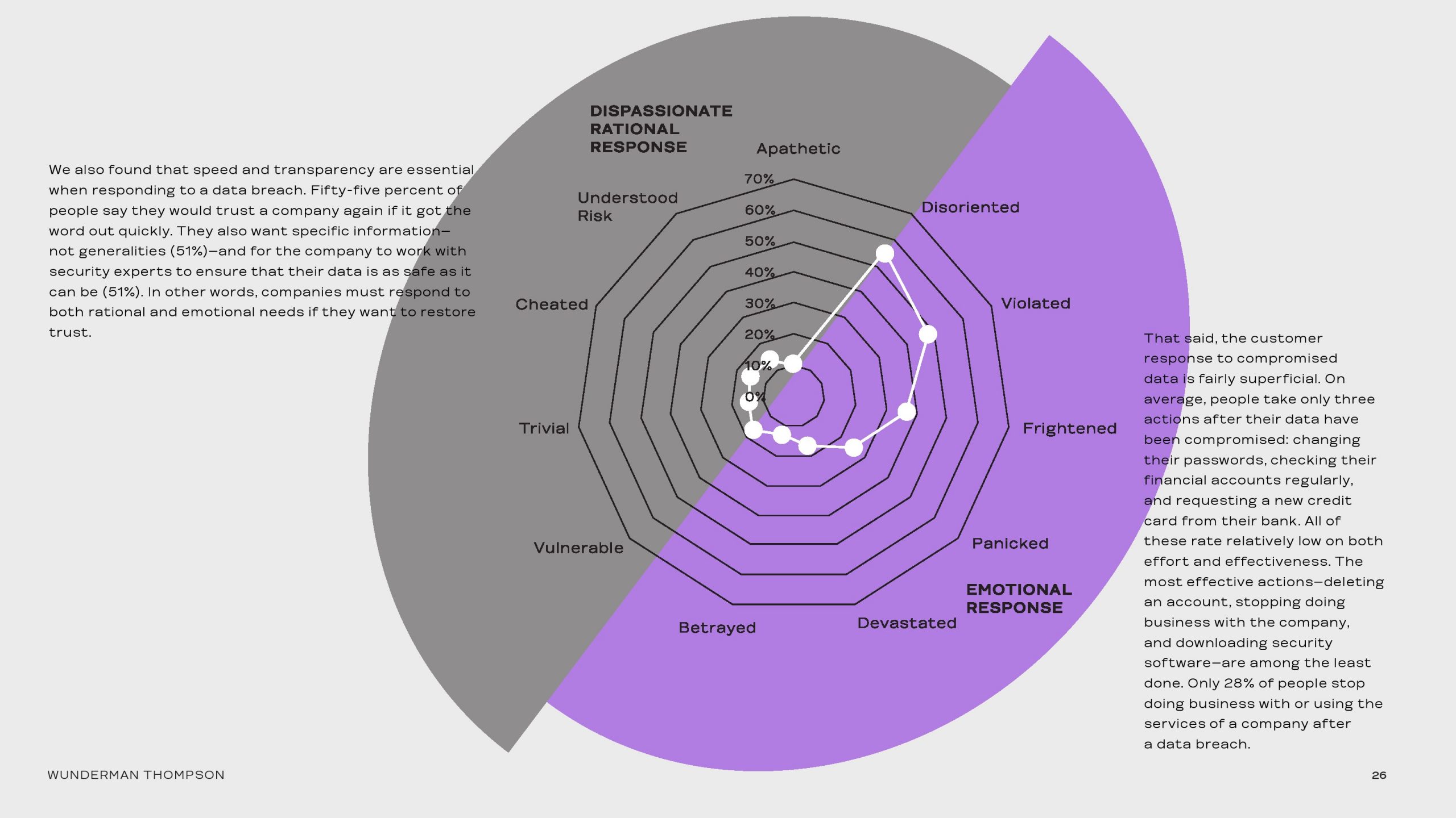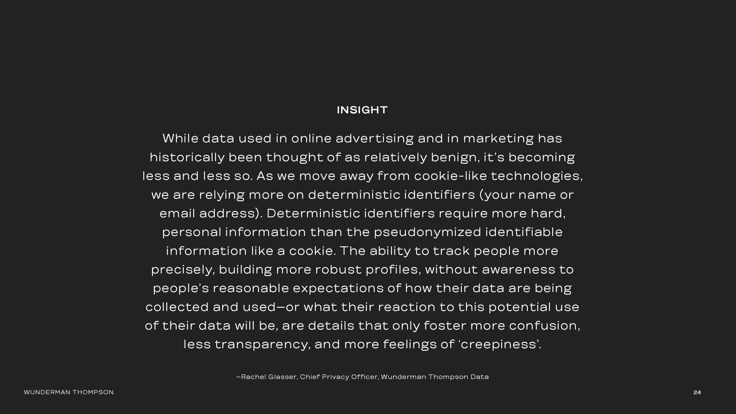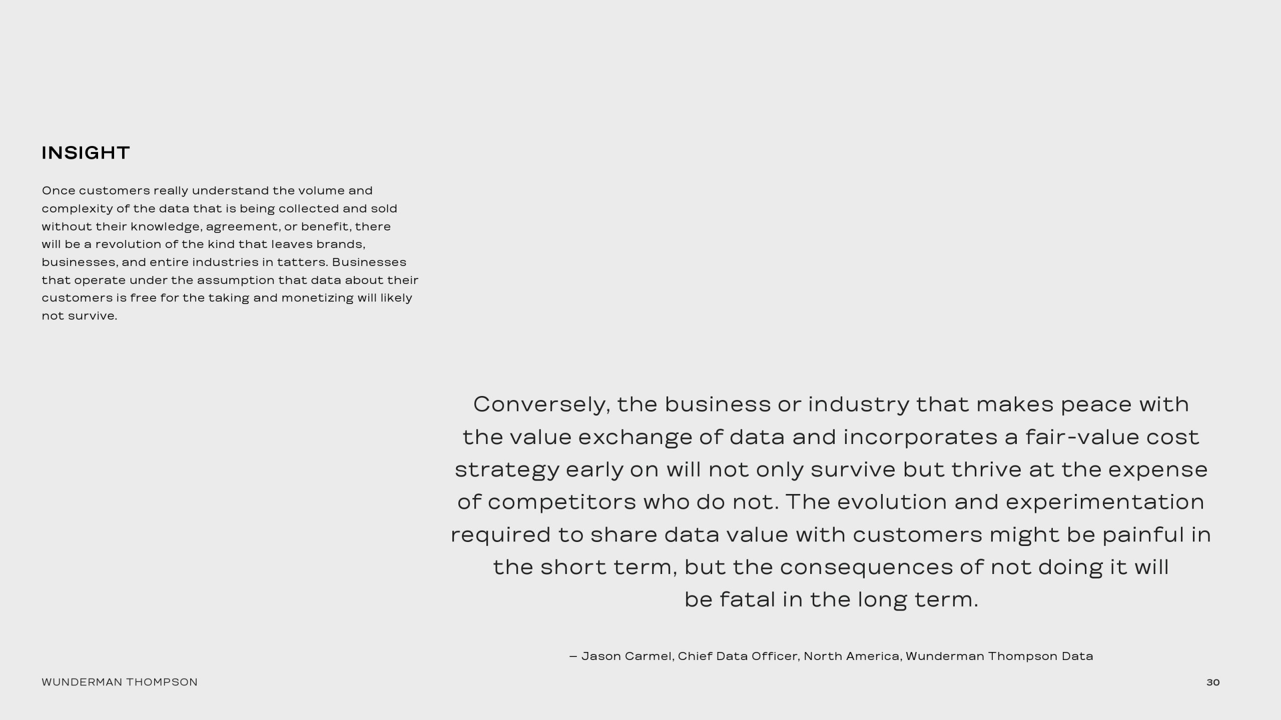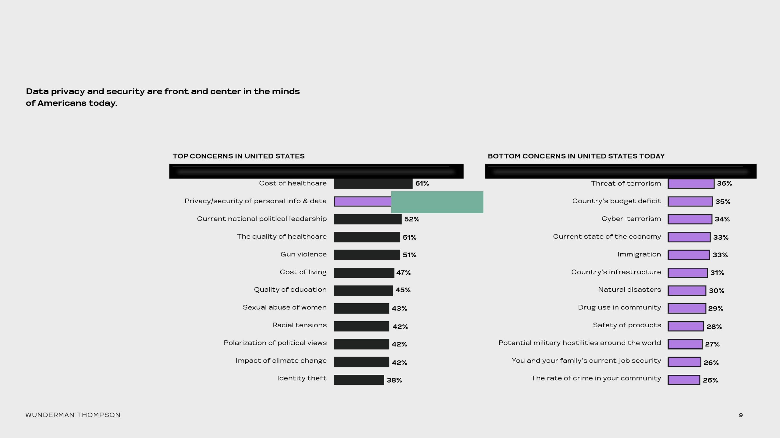 最重要的结果既有见识又令人震惊,并涉及广泛。因此,智威汤逊将其分为两类:客户洞察力和品牌影响力。第一部分是客户对数据隐私的看法,包括详细的结果,见解和关注,希望有助于将品牌推向更加数据安全、透明和自信的环境。第二部分分析了品牌提在新的数字价值交换时代如何优先考虑隐私而不是便利。