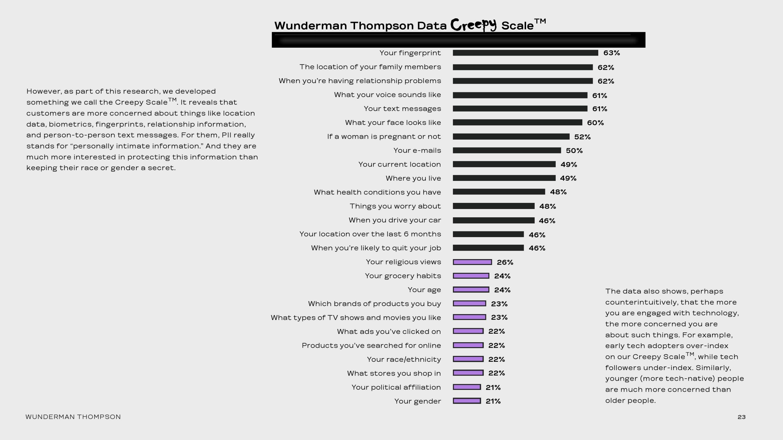 但是,正如我们在新闻中看到的数据泄露一样,公司并不总是最好的个人信息管理者。人们越来越难以看到允许公司收集其信息的好处。为了更好地了解它对人们及其行为的影响,智威汤逊调查了1,500名18岁以上的美国成年人。