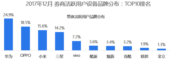 2.5 券商APP活跃用户特征:设备品牌(安卓)