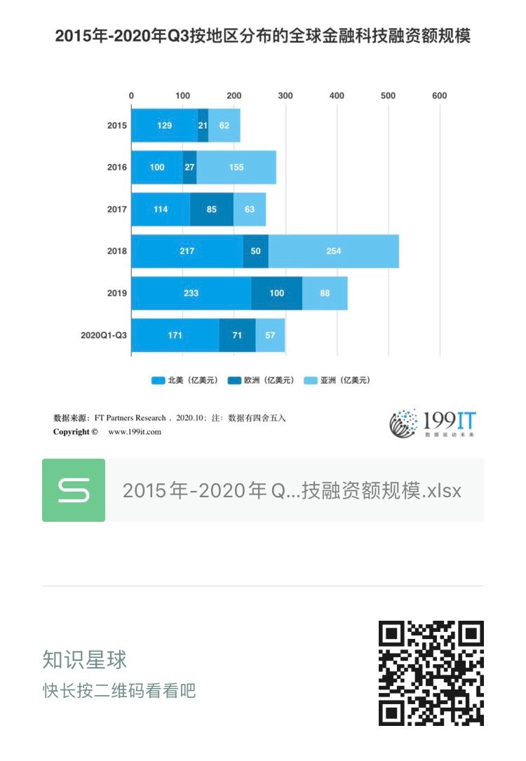2015年-2020年Q3按地区分布的全球金融科技融资额规模(附原数据表) 更多阅读:2018-2021年全球金融科技成长期投资额(附原数据表) Drake Star:2022年技术展望MEDICI:2019 年上半年全球金融科技投资成交1068 笔融资交易 共筹集 220.4 亿美元CFTE:2021年金融科技工作报告金融科技推动中国绿色金融发展:案例与展望FACEBOOK&branch:2021年金融科技行业白皮书1.0十字路口:中国金融科技的新篇章SensorTower:2020年金融科技应用报告金融科技创新发展研究报告:数据要素与金融科技创新2017年Q3-2020年Q3全球金融科技融资规模数据 金融科技的20年演变澳洲会计师公会:企业金融科技应用调查报告–中国内地Michael Page:2018年中国金融科技就业状况中国人民银行:金融科技(FinTech)发展规划(2019-2021年)–附全文PitchBook:2023年第一季度企业金融科技报告
