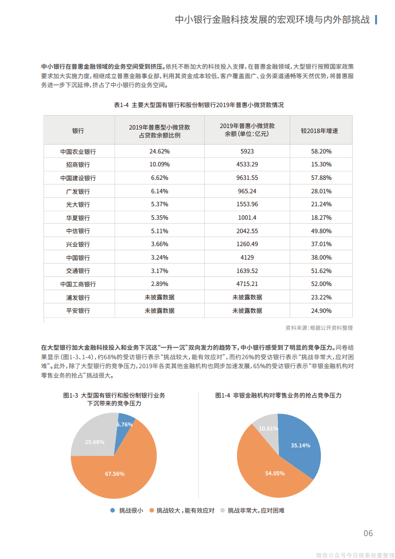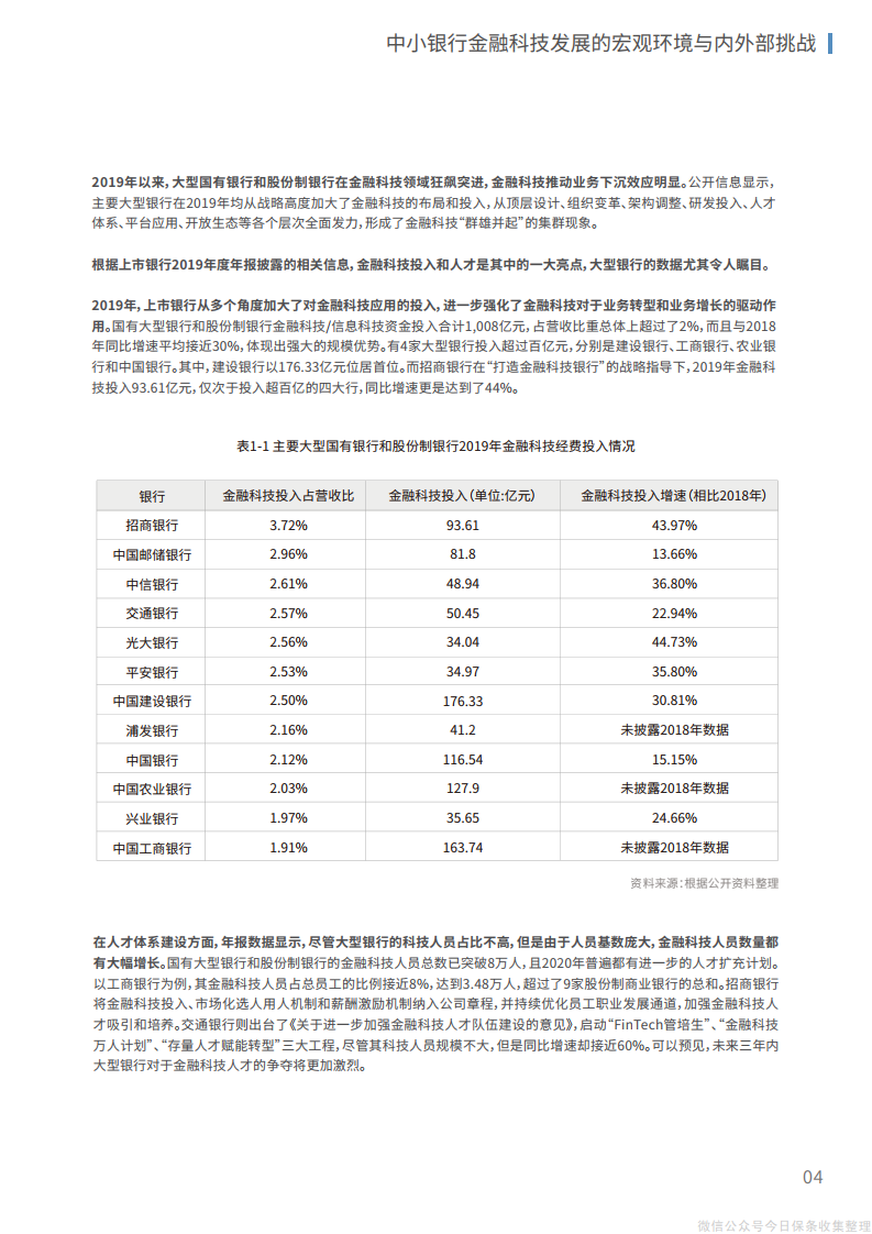 2019年以来,大型银行进一步加大金融科技的投入、人才、组织建设力度,中小银行不仅明显感受到竞争压力,普惠金融领域的业务空间也受到挤压。中小银行加速数字化转型升级的特色发展之路愈发迫切。