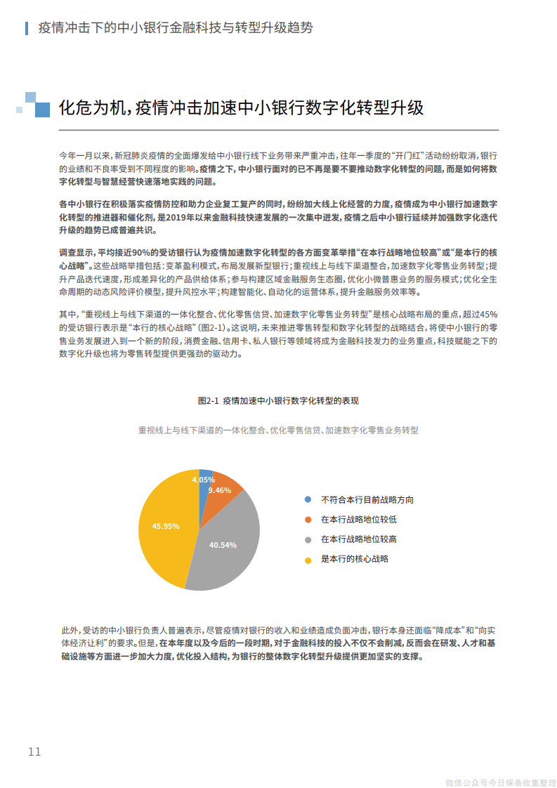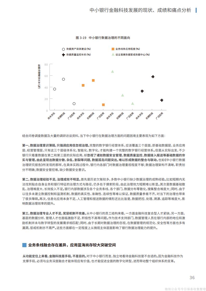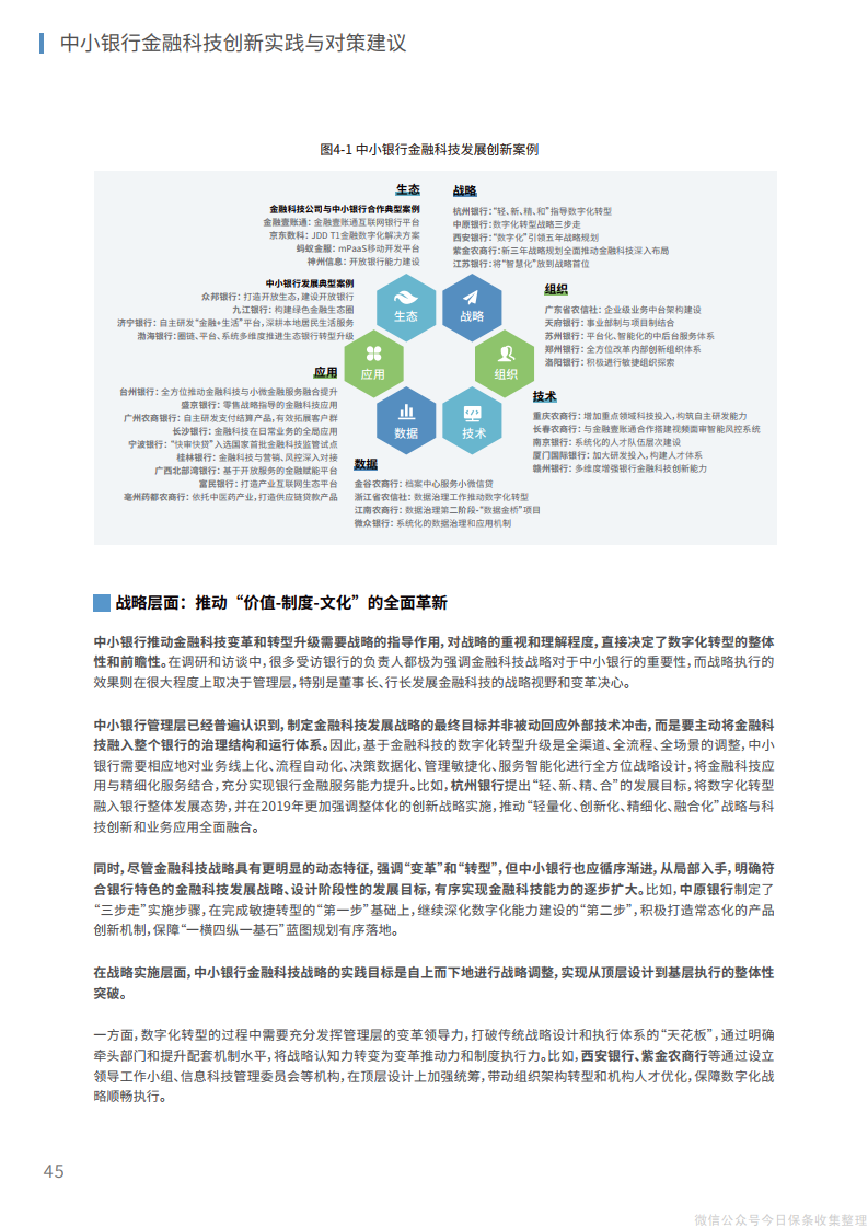 1、在战略层面,战略设计需要主动融入银行的治理结构和运行体系,明确符合银行特色的金融科技实施路径,设计阶段性的发展目标,实现从顶层设计到基层执行的整体逐步突破。