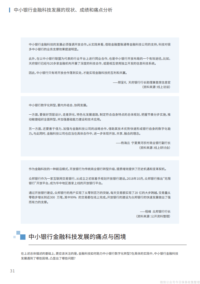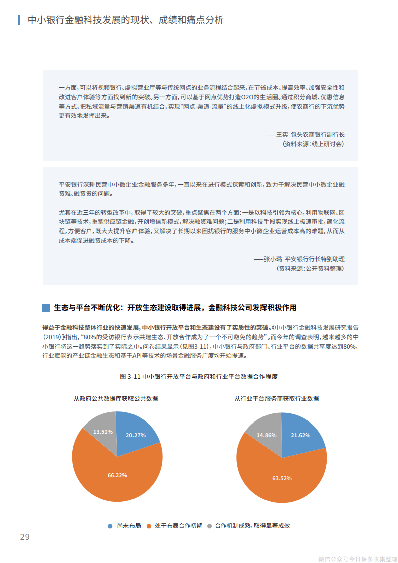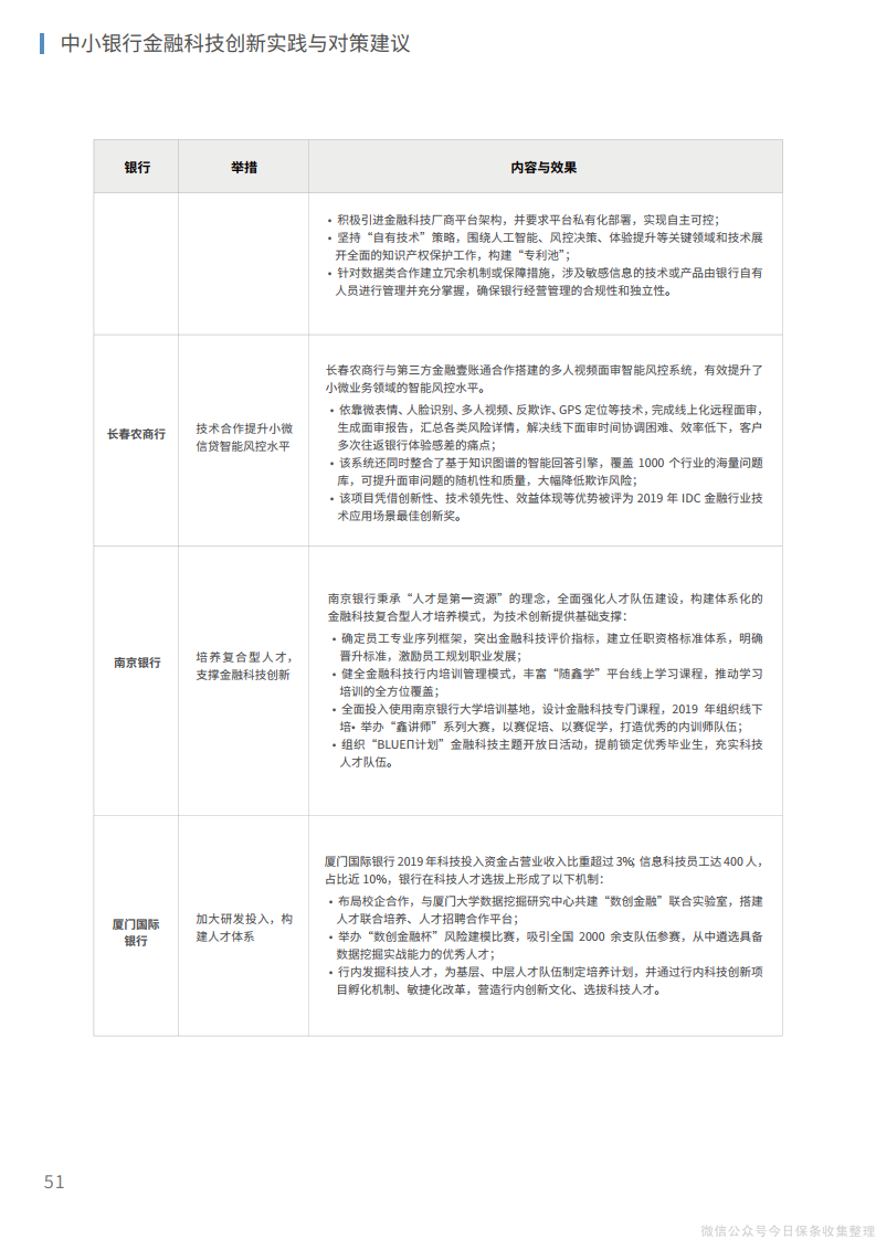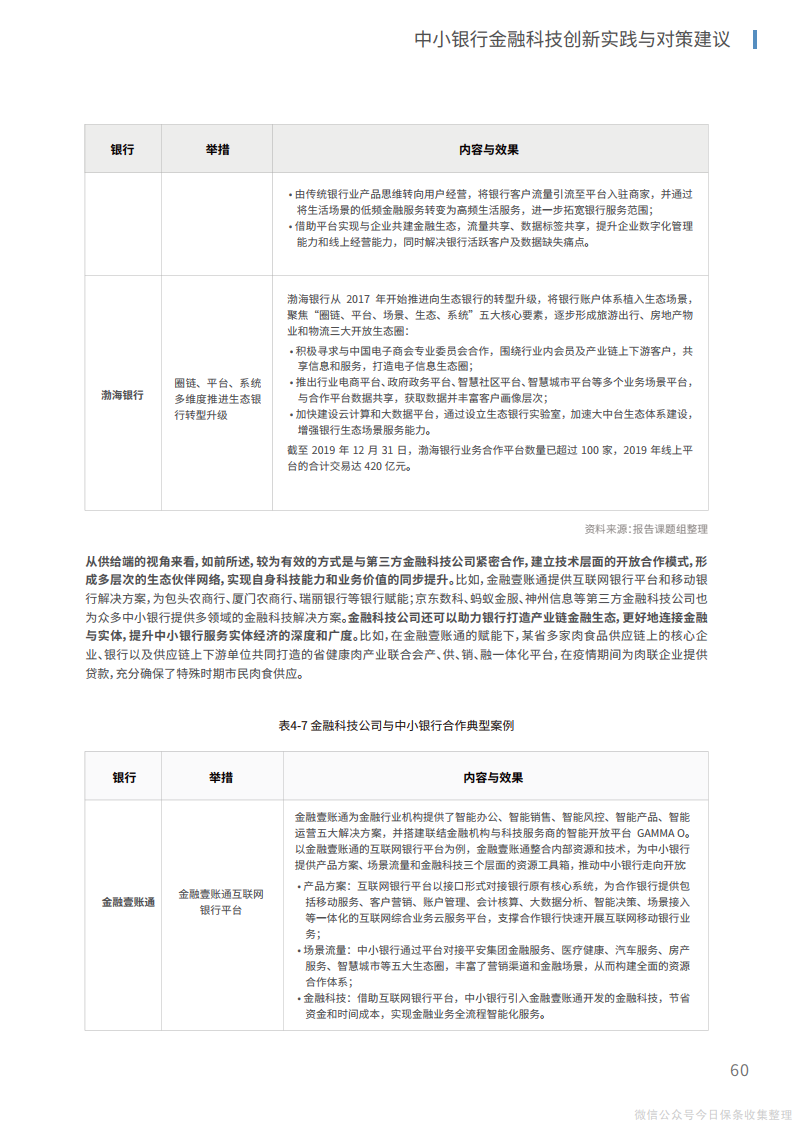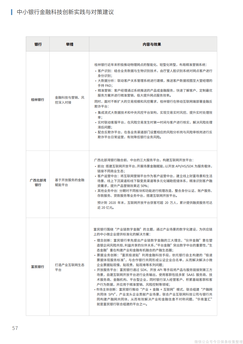 6、在生态层面,在研发、业务、场景、渠道、客户等方面建设整体化开放生态,实现“获客、留客、活客”的生态赋能;从供给端建立与第三方金融科技公司的有效合作模式,在开放平台上形成生态伙伴网络,实现自身科技能力和业务价值的同步提升。