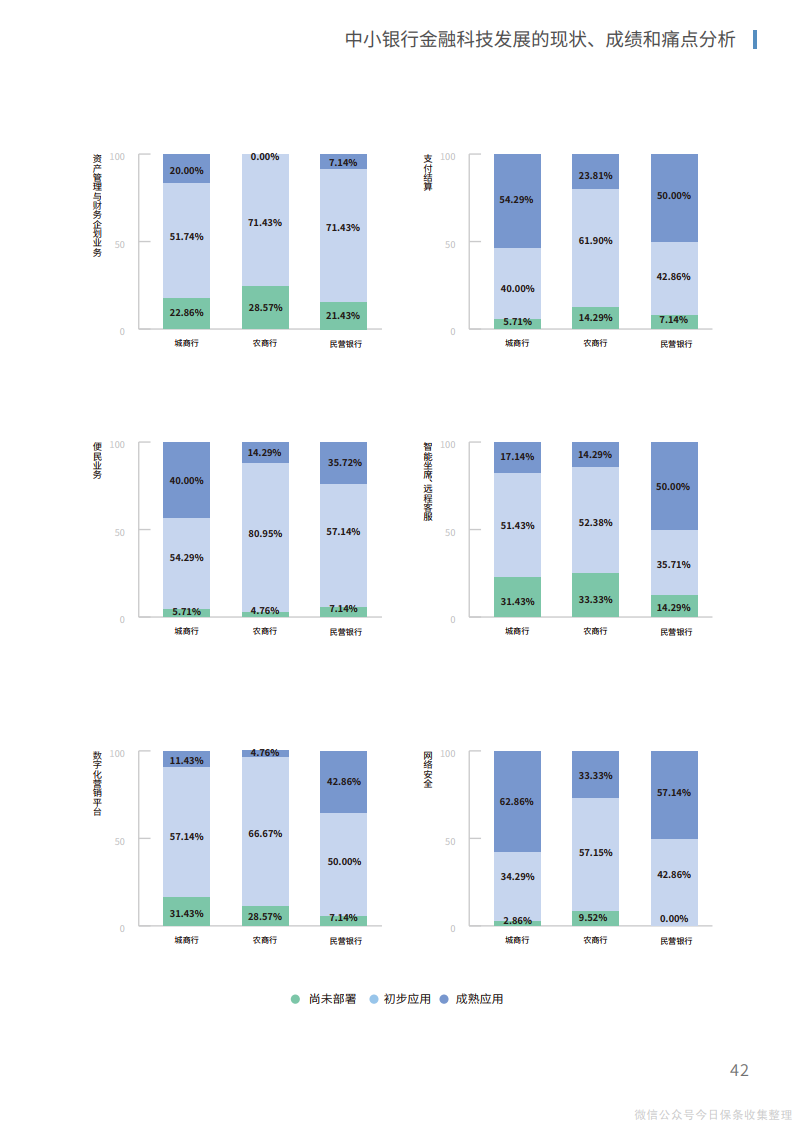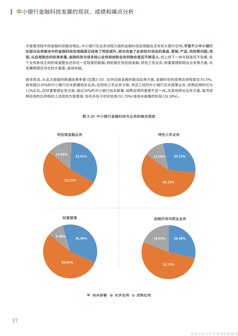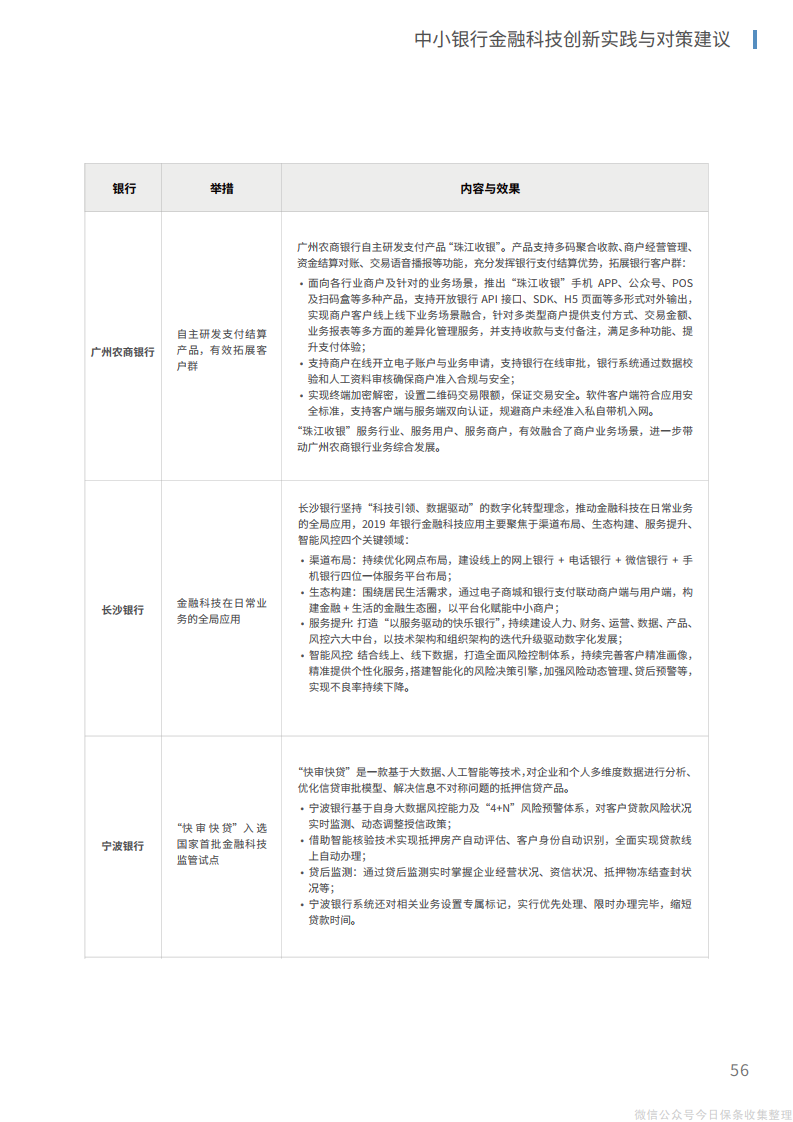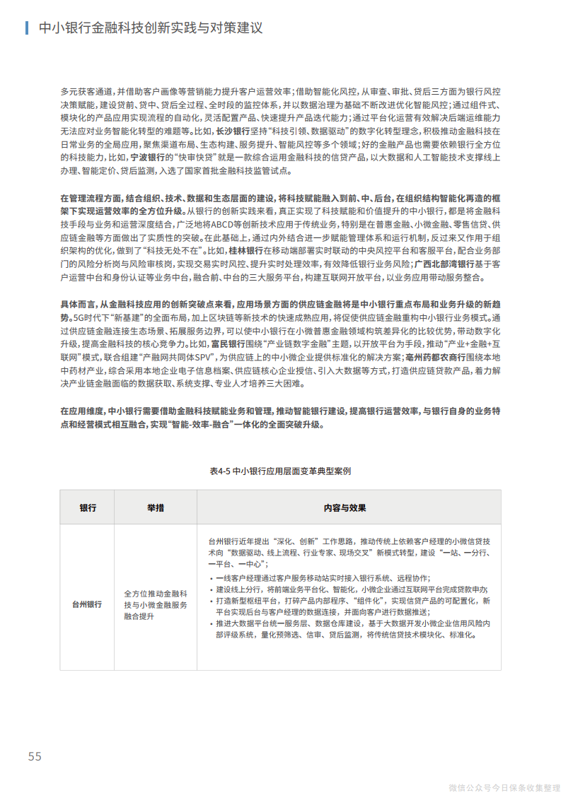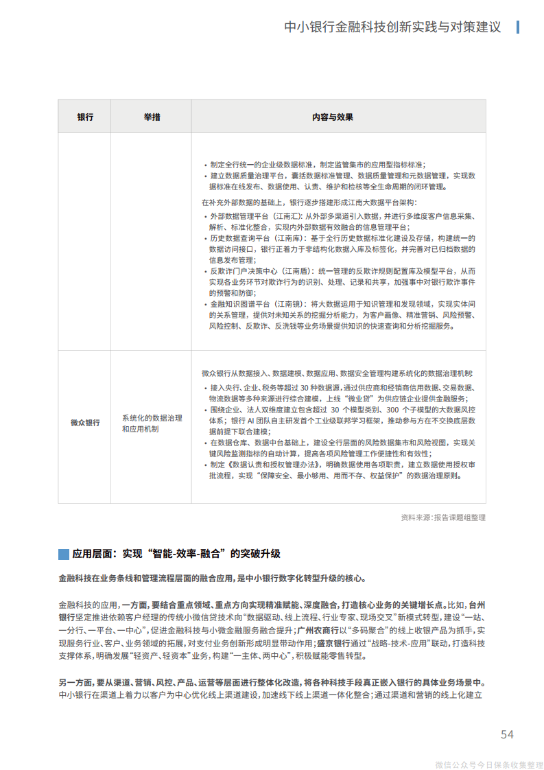 5、在应用层面,结合重点领域、重点方向实现技术应用的精准赋能、深度融合,从渠道、营销、风控、产品、运营等层面进行整体化改造,在组织结构智能化融合再造的框架下实现运营效率的全方位升级。