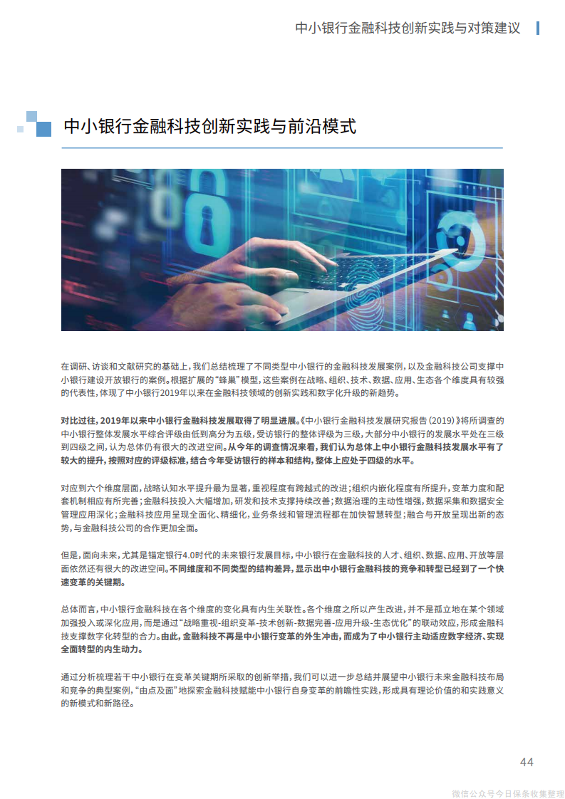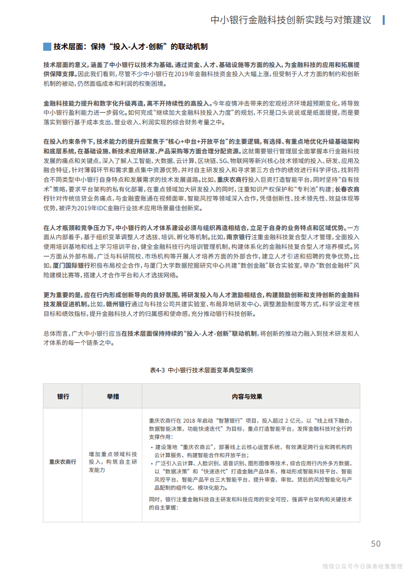 3、在技术层面,针对薄弱环节和研发重点集中投入,选择符合自身禀赋和实际需求的技术研发及应用模式,优化升级基础架构和底层系统,立足于业务特点和区域优势,构建鼓励创新和支持创新的金融科技发展促进机制。