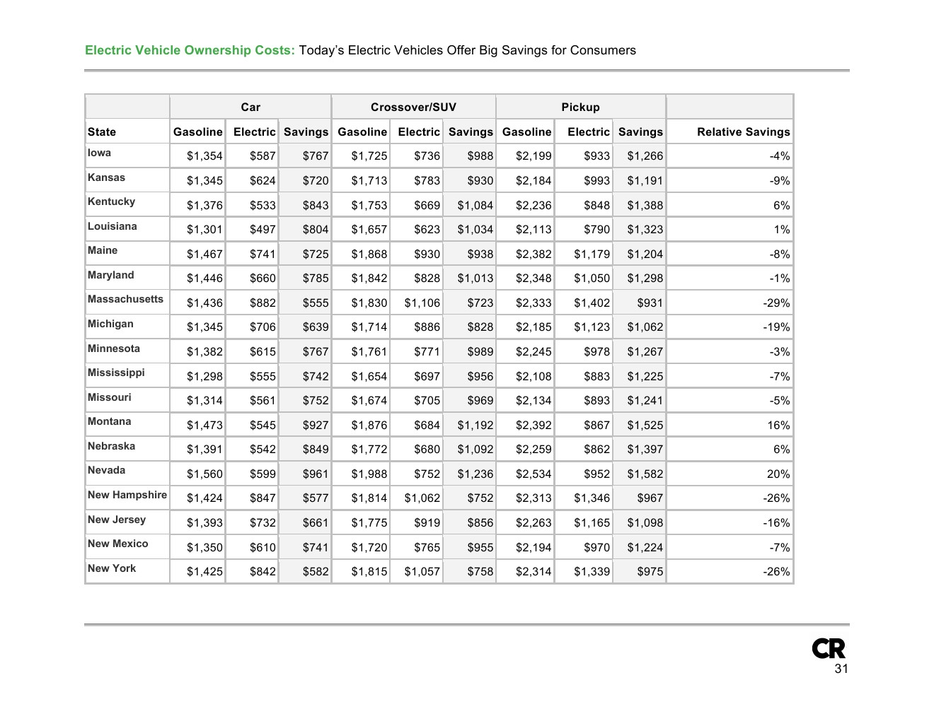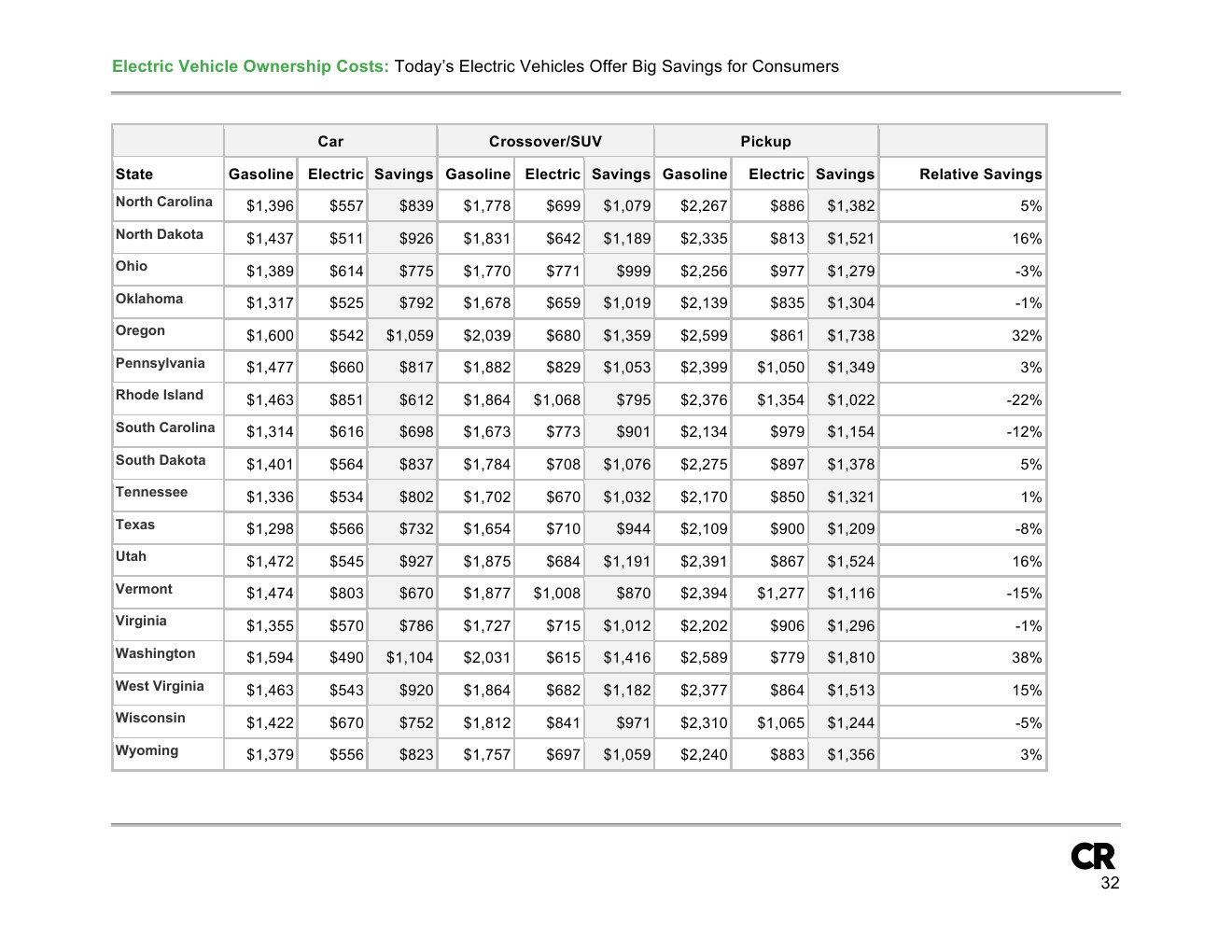 Chris Harto发布了“电动汽车成本报告”。预购价格只是消费者购车成本的一部分。在传统汽油动力汽车的整个生命周期内,燃料和维护成本加起来可能会比最初的购买价格还要高。虽然电动汽车(EV)通常有更高的预购价格,但它们可以为消费者节省大量运营费用。