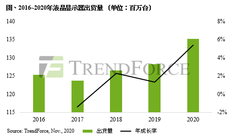 根据TrendForce集邦咨询旗下显示器研究处最新调查显示,受惠于疫情衍生的远距工作与教育、宅经济需求,加上北美地区消费力道持续强劲,推升以消费市场为主的液晶显示器品牌厂出货表现逆势上扬,连续三年呈现成长态势,预估2020年出货年成长幅度可望达5.4%