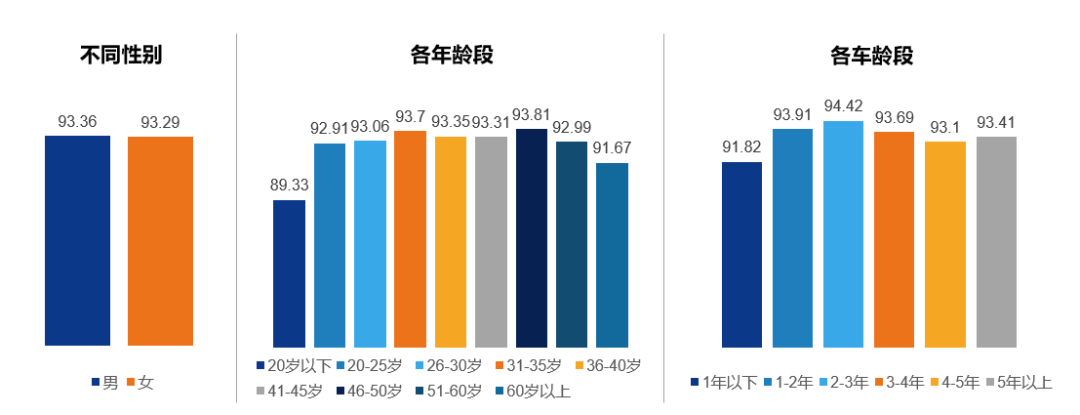 《报告》还显示,女性消费者对售后服务质量的满意度略低于男性性;20岁以下和1年以下车龄消费者对售后服务的满意度都较低;46-50岁消费者以及2-3年车龄消费者对汽车售后服务的满意度都较高。