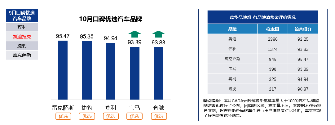 特别说明:本月CADA云数聚将采集样本量大于100的汽车品牌监测结果也进行了公布,因监测区域、样本量不同,本数据不作为排名依据,旨在帮助各品牌车企进行用户满意度对比分析,真实客观了解消费者体验结果。