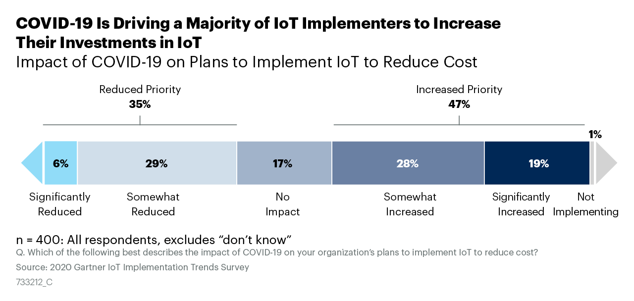 根据Gartner的最新调查,尽管COVID-19产生了破坏性影响,但仍有47%的企业计划增加对物联网(IoT)的投资。