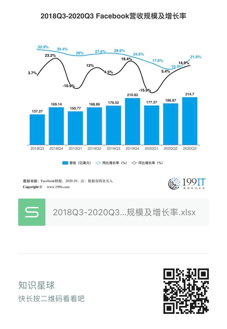 - 2018Q1-2020年Q2 Facebook营收规模及增长率(附原数据表)