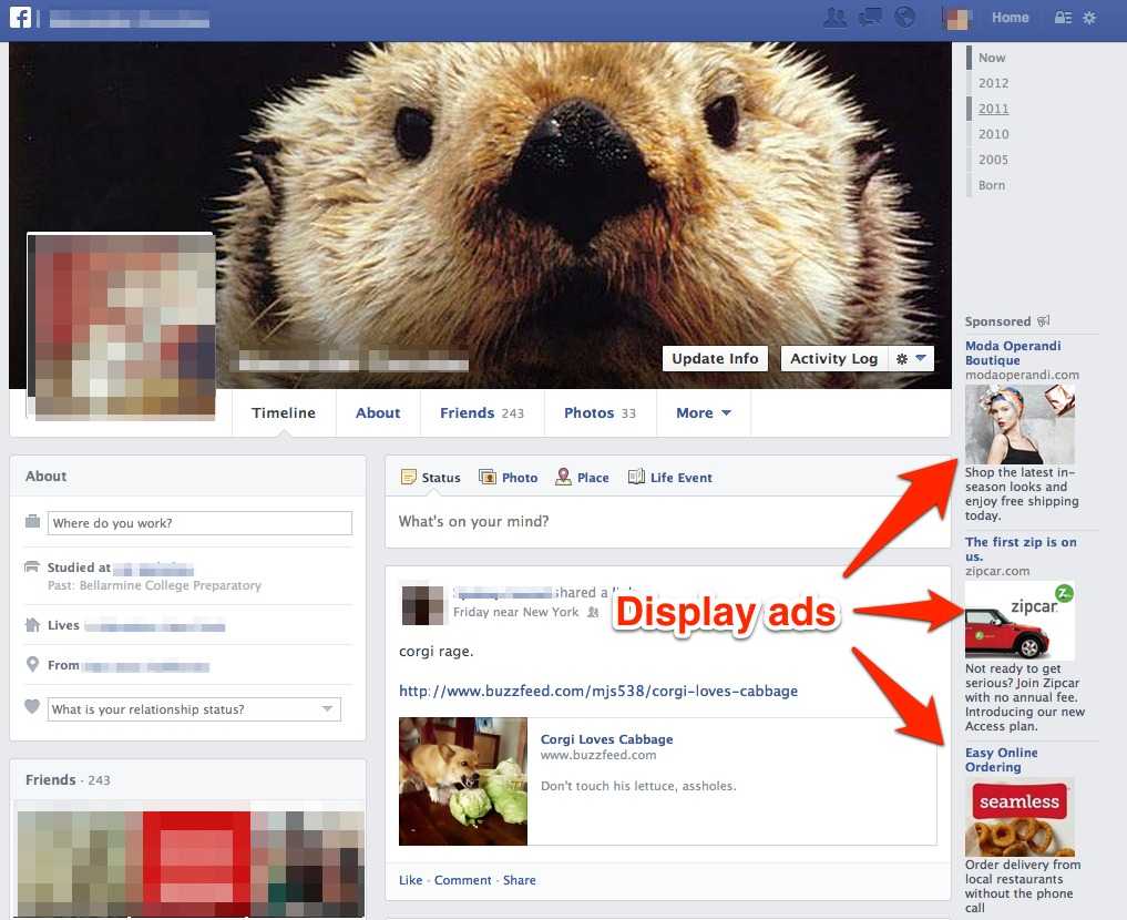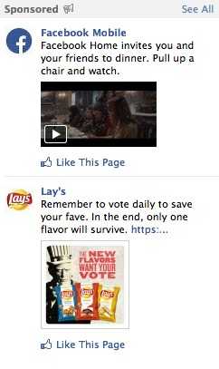 Facebook的展示广告还挂在网站的右边,在用户的主注意力之外,与在信息流中的新的“原生”广告相比,这类广告是事后才会被关注的事情。