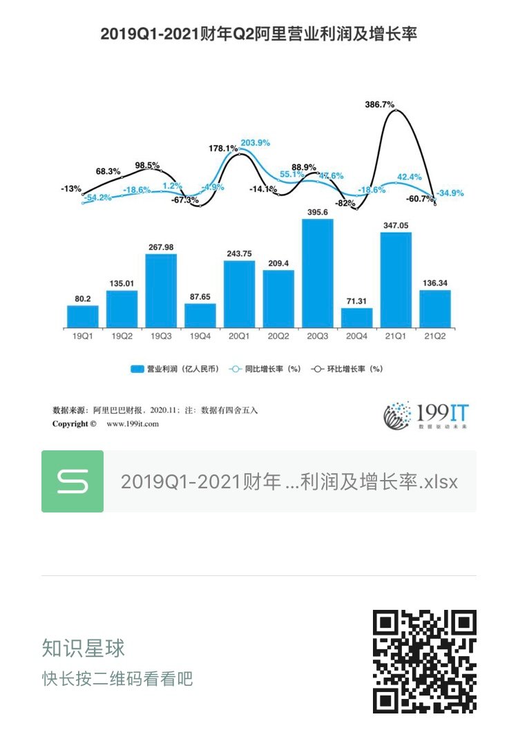 - 2019Q1-2021财年Q2阿里营业利润及增长率(附原数据表)