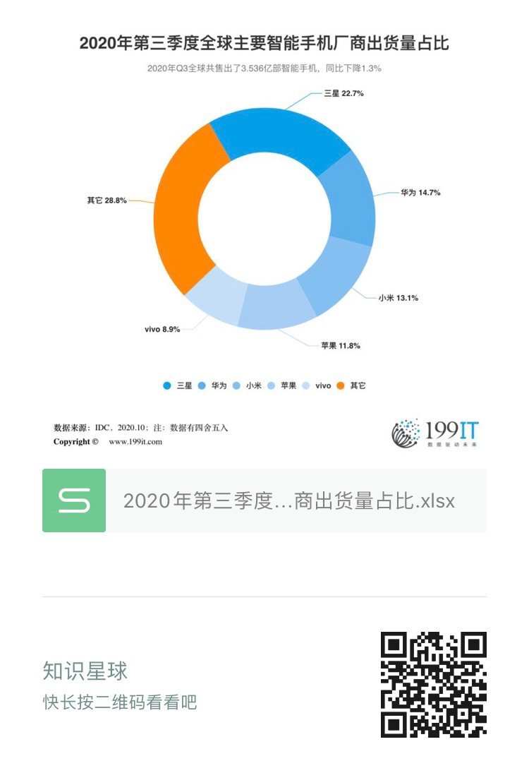- 2020年第三季度全球主要智能手机厂商出货量及增长率(附原数据表)