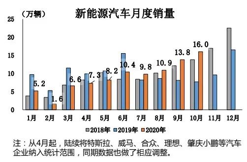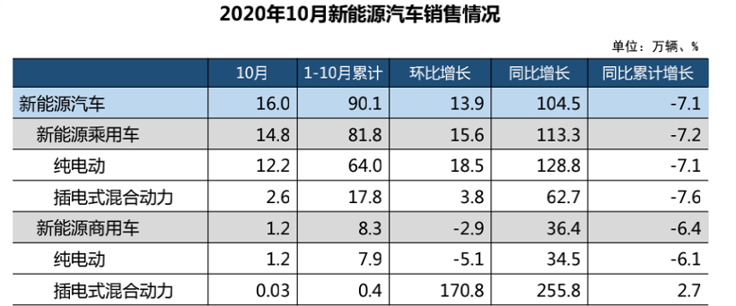 数据显示,10月新能源汽车产销双双超过16万辆,创单月历史新高,环比和同比继续保持快速增长,分别达到16.7万辆和16.0万辆,环比增长19.6%和13.9%,同比增长69.7%和104.5%。