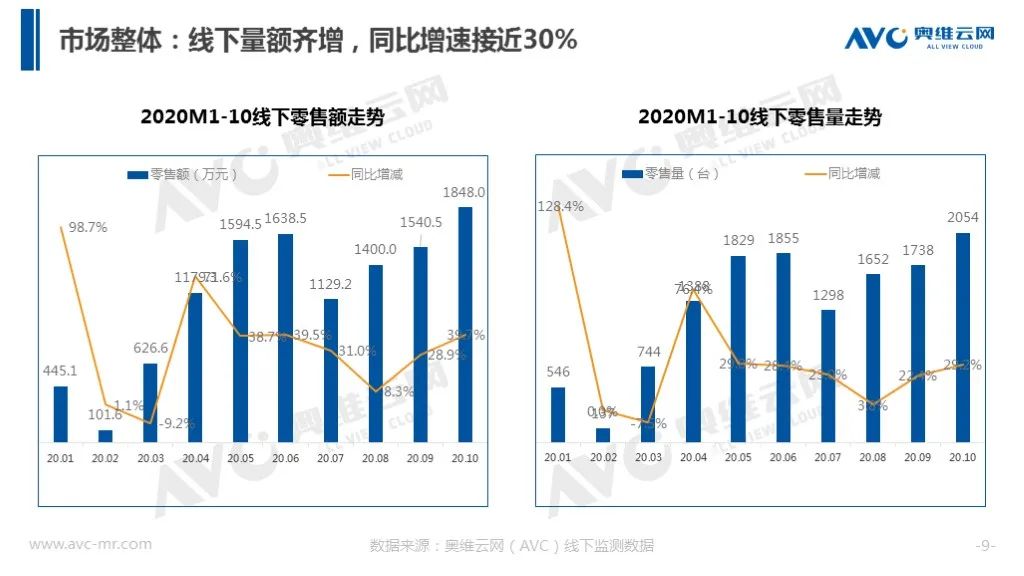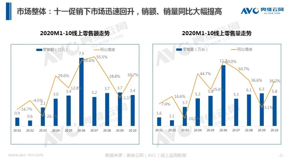 根据奥维云网(AVC)线上监测数据显示, 集成灶十月零售额同比增速回正,达到了30.7%;同时零售量同比也增长了36.2%,线下市场表现优异,量额齐增。依照集成灶的表现,在接下来的双十一活动中,同比增速有望再次飙升。