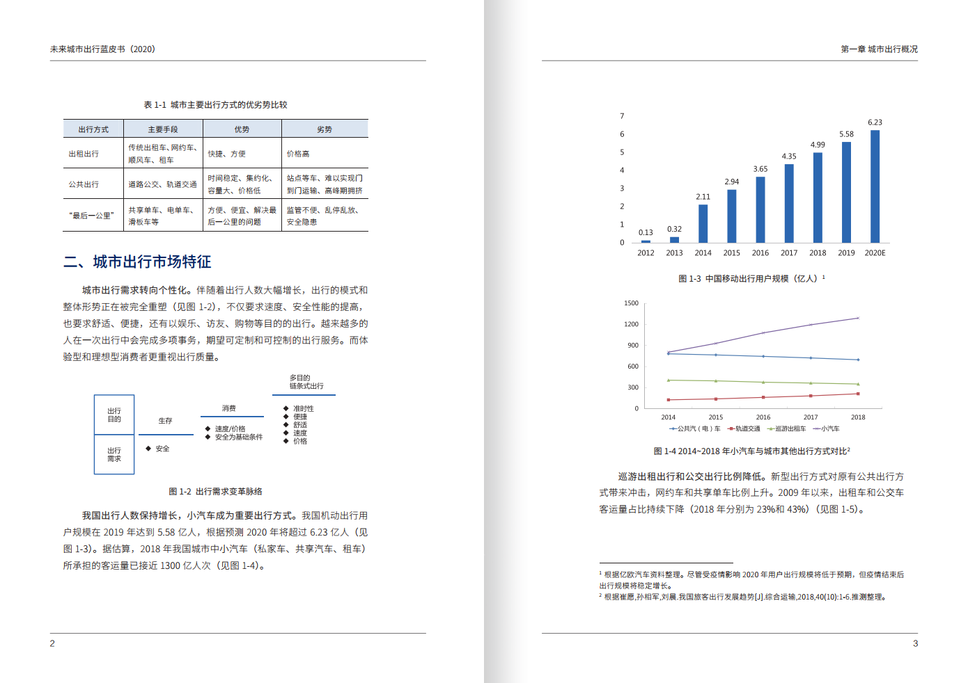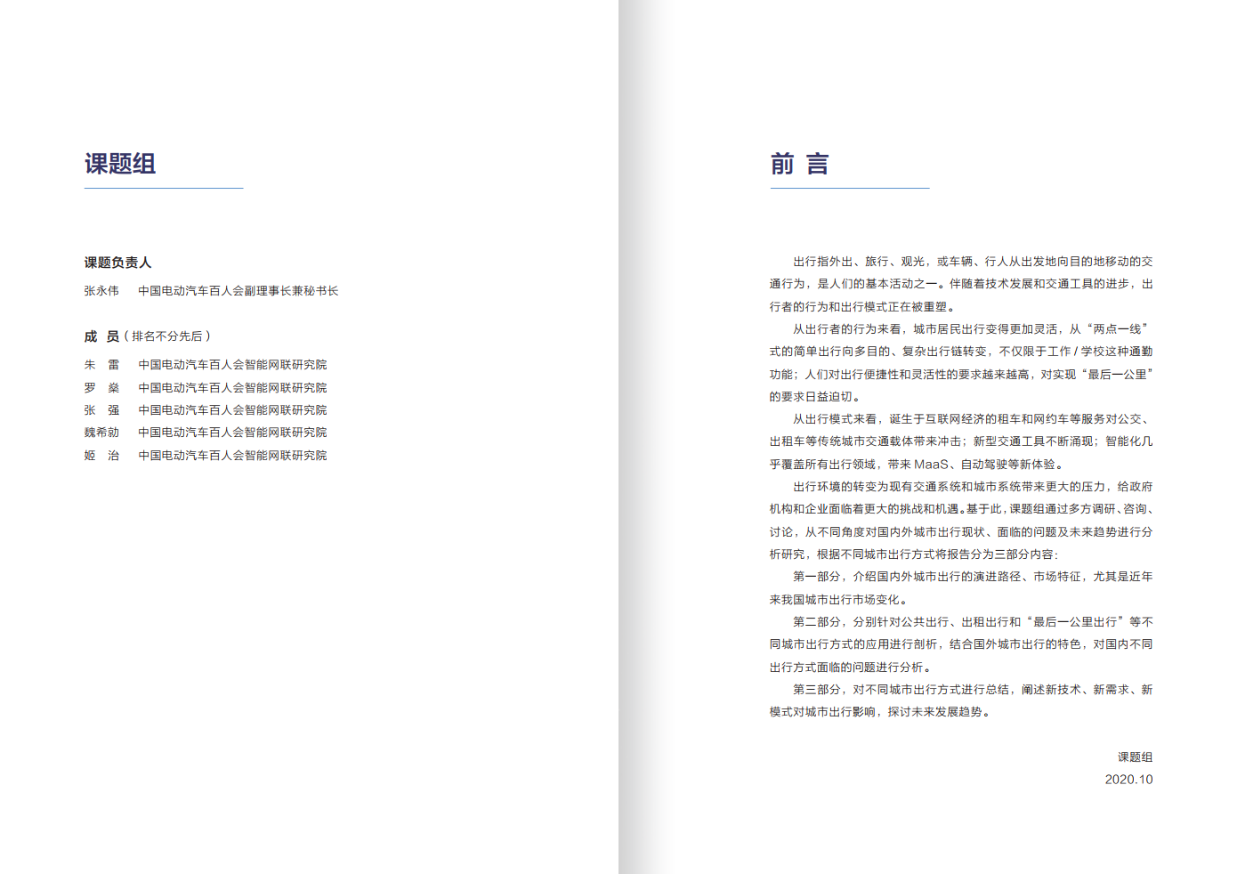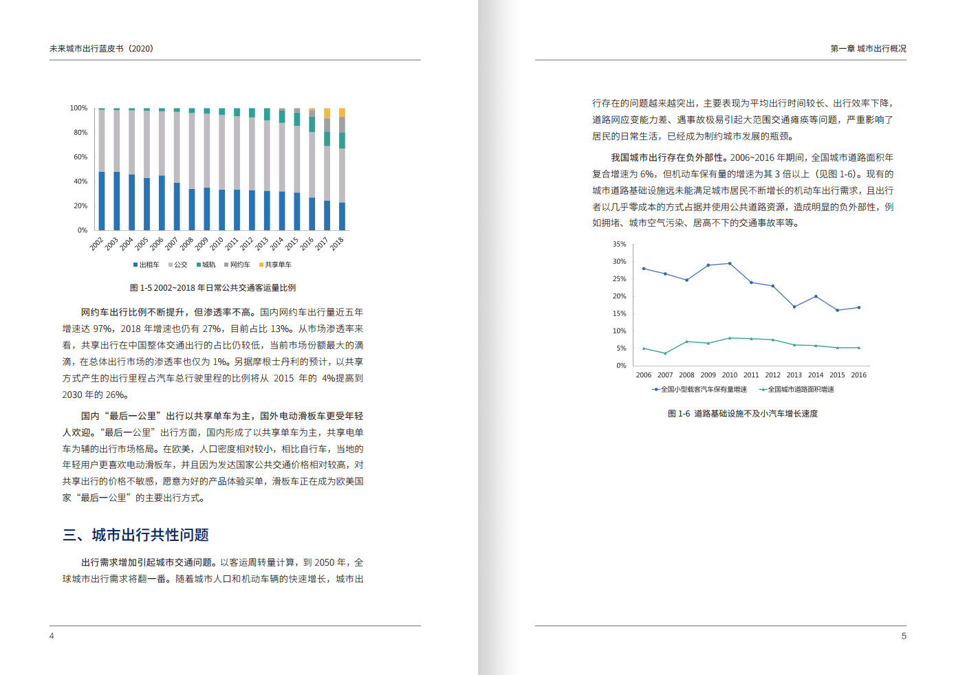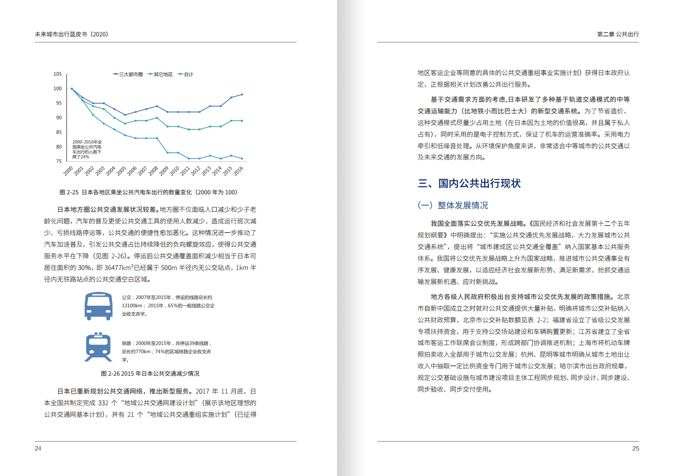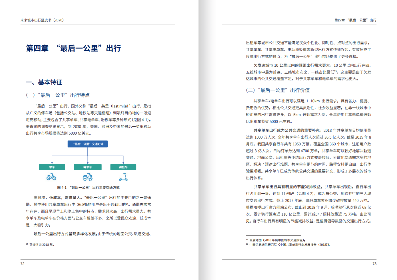 蓝皮书可分为三个部分,整理并汇总了国内外城市出行方式与需求的历史沿革与市场特征,结合多方数据描述了当前城市出行的现状,剖析不同出行方式存在的问题, 阐述新技术、新需求、新模式对城市出行的影响,洞察未来城市出行的发展趋势。