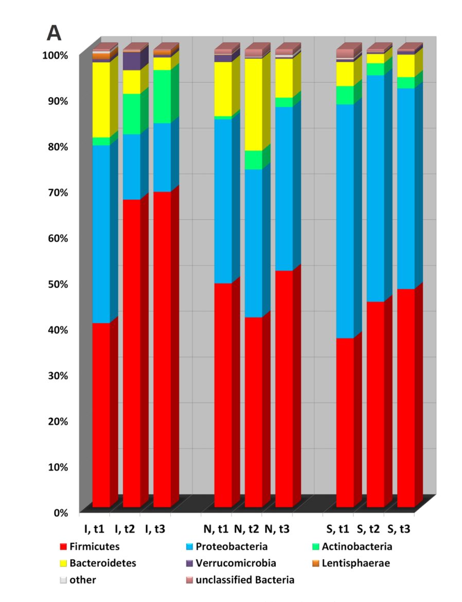 研究员将戒烟者的微生物群组成与对照组个体(对照组为目前吸烟者和非吸烟者)的微生物群组成进行了比较,发现戒烟者与对照组相比,体内的硬壁菌门菌类(Firmicutes)和放线菌(Actinobacteria)的数量较高,而拟杆菌(Bacteroidetes) 和蛋白细菌(Proteobacteria)的数量较少。