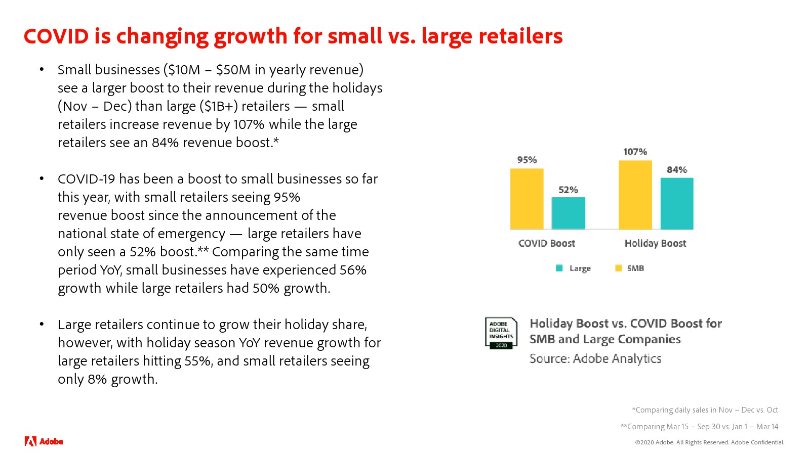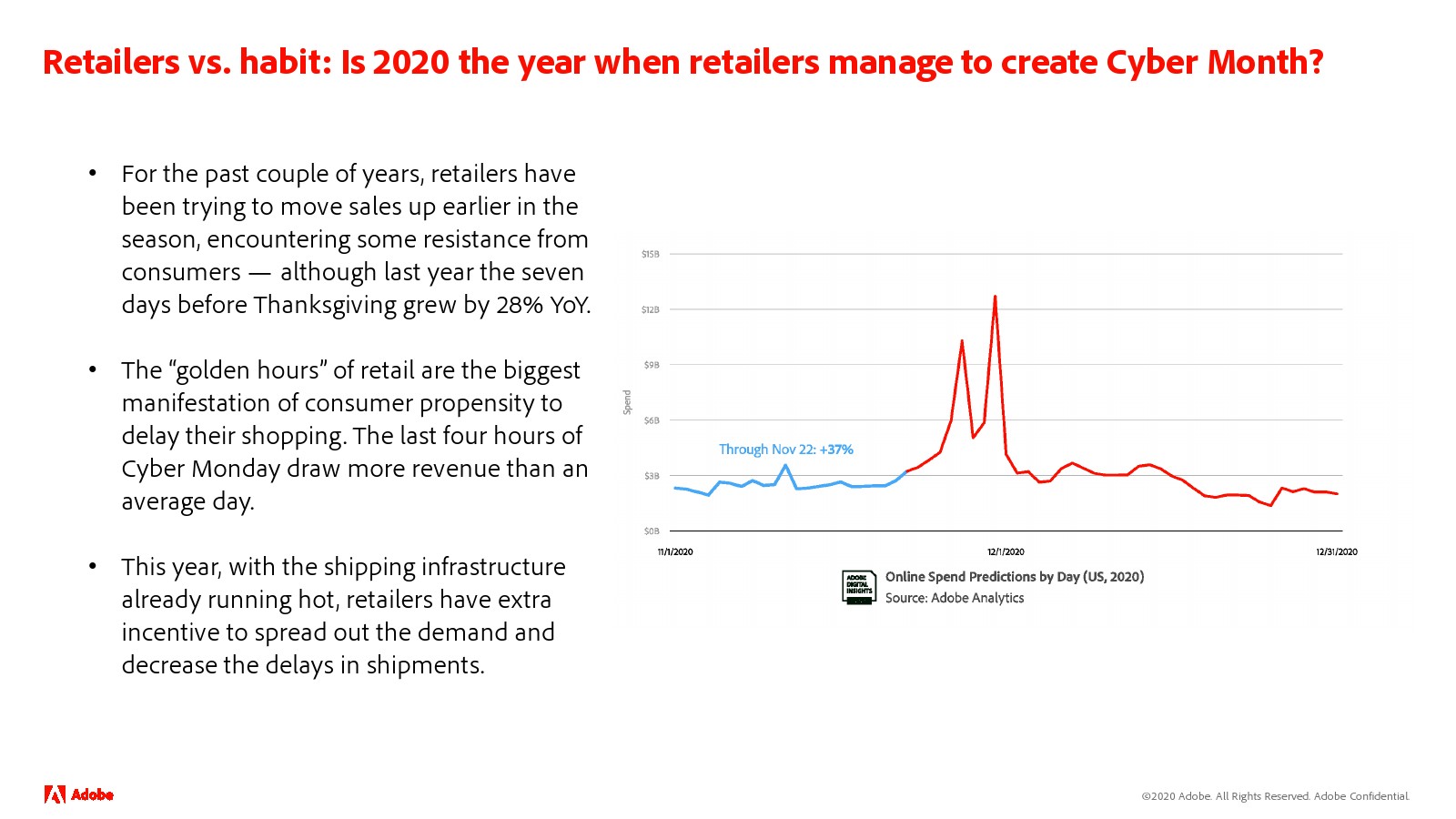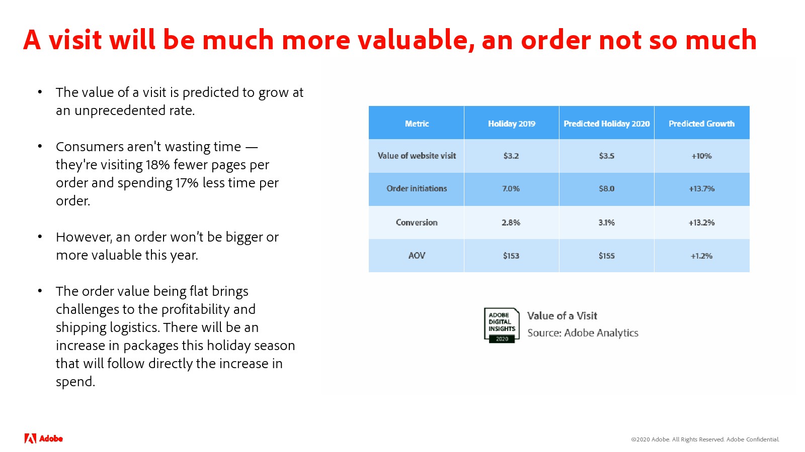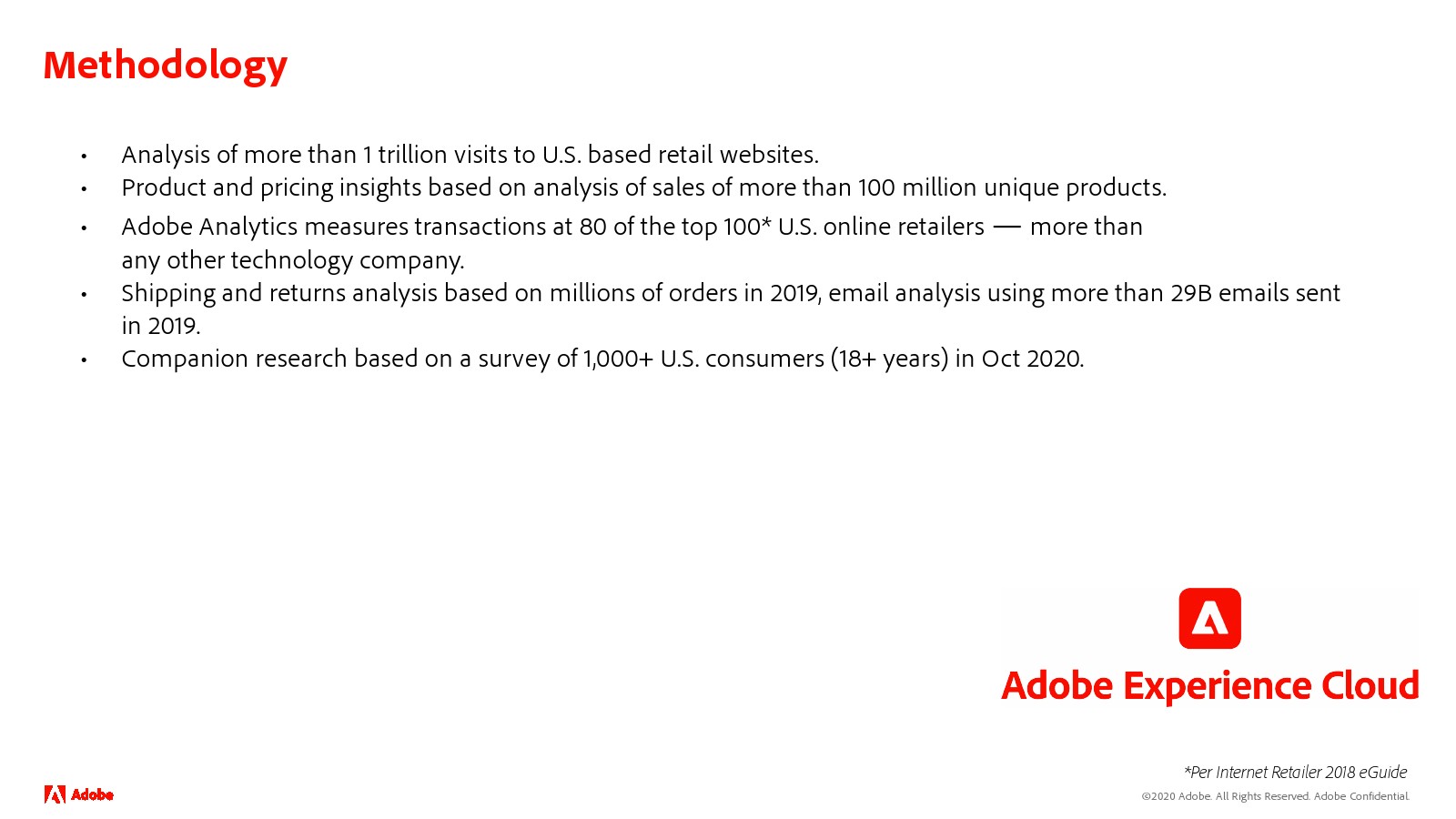 Adobe预测,在线假期支出将达到1,890亿美元,同比增长33%。如果流感季节使人们无法购物,那么在线消费的潜力可能会更高,达到2000亿美元(同比增长47%)。