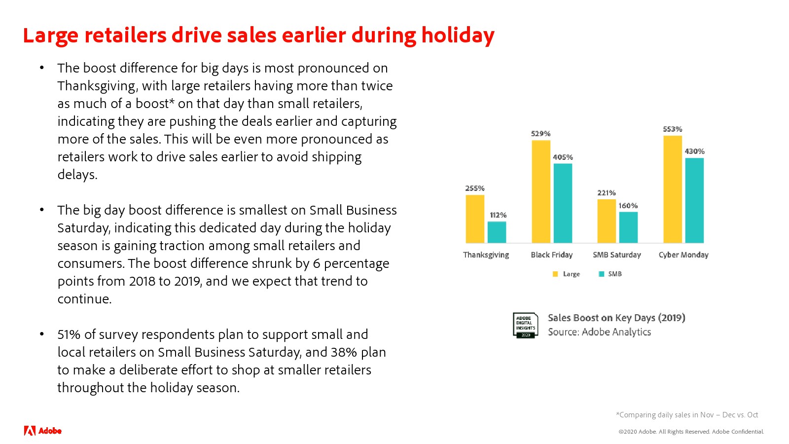 Adobe发布了新报告“2020年假日购物季预测”。主要预测包括: