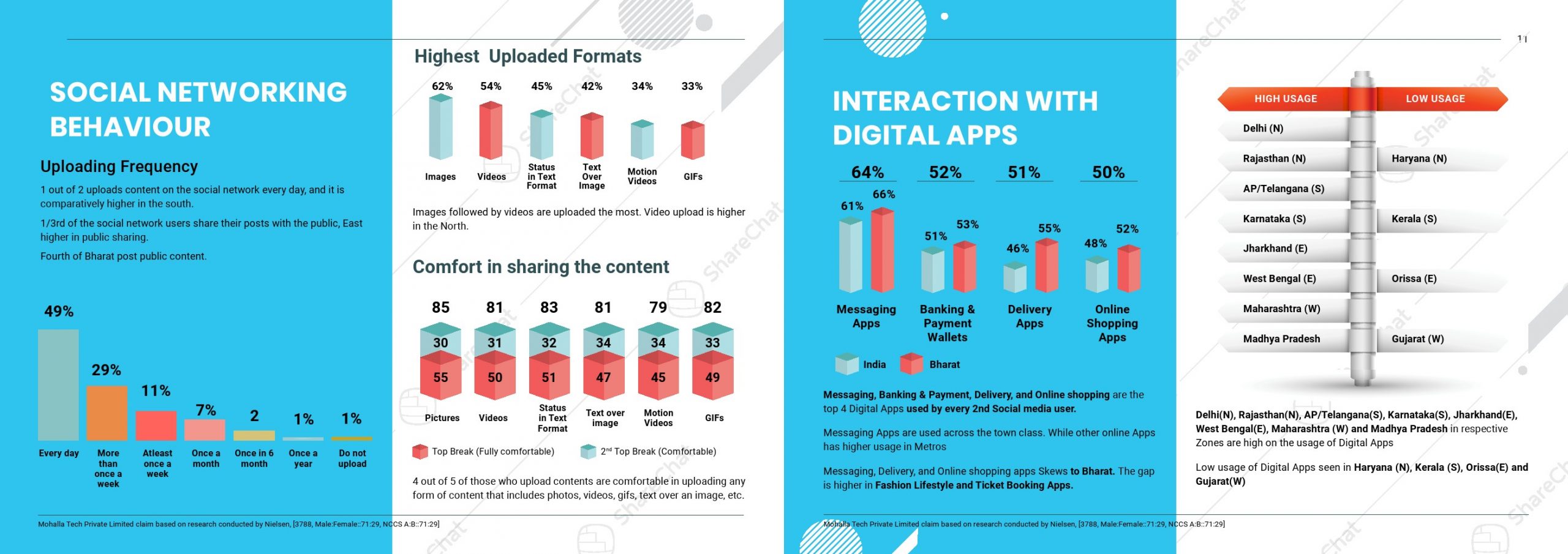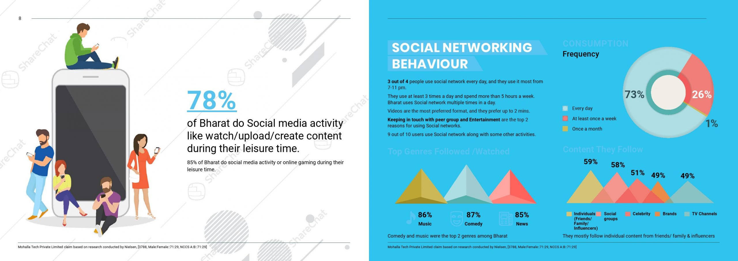- 78%的Bharat(说方言的印度人)在闲暇时间访问社交媒体,例如观看、上传和创建内容。