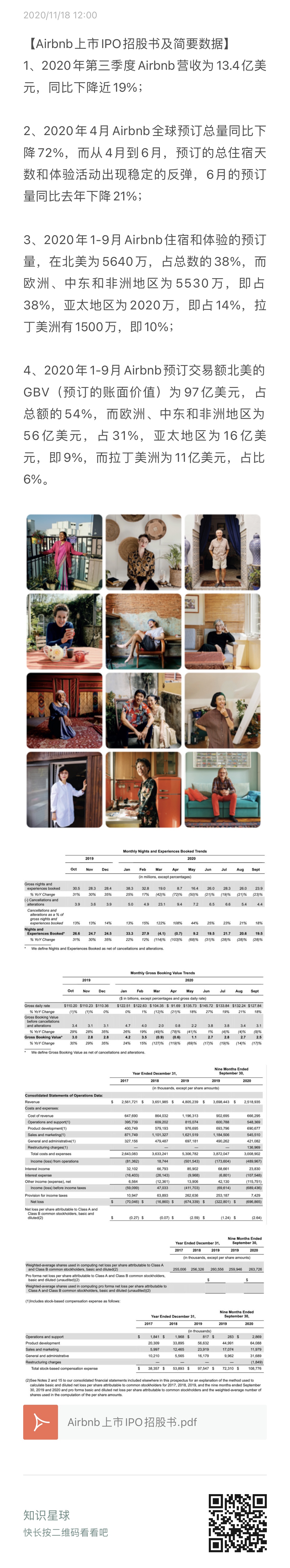 1、2020年第三季度Airbnb营收为13.4亿美元,同比下降近19%;