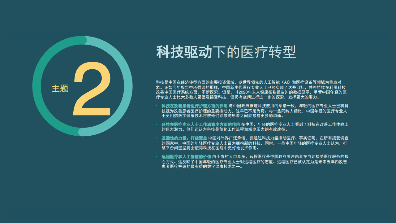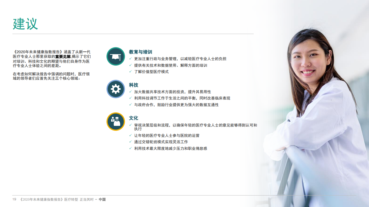随着中国向着《“健康中国2030”规划纲要》中的目标不断迈进,医疗领域科技水平正在快速提高,善于驾驭新科技的年轻医疗专业人士,正在成为有可能推动中国医疗变革的重要动力。他们希望充分发挥自己的力量,促进医疗模式的转型。