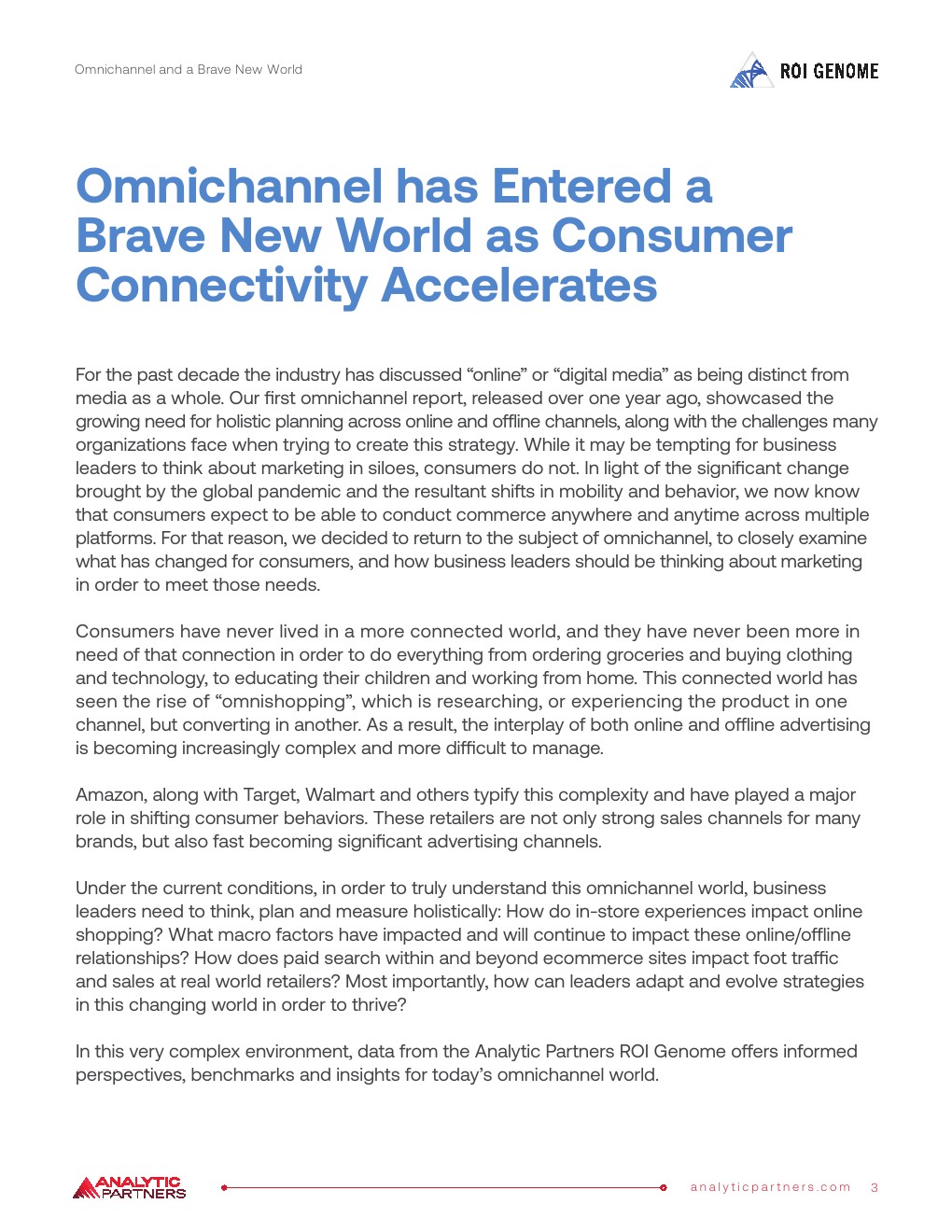 Analytic Partners、Omnichannel和Brave New World的最新ROI Genome报告针对全球大流行带来的变化以及随之而来的消费者行为变化对全渠道营销进行了研究。