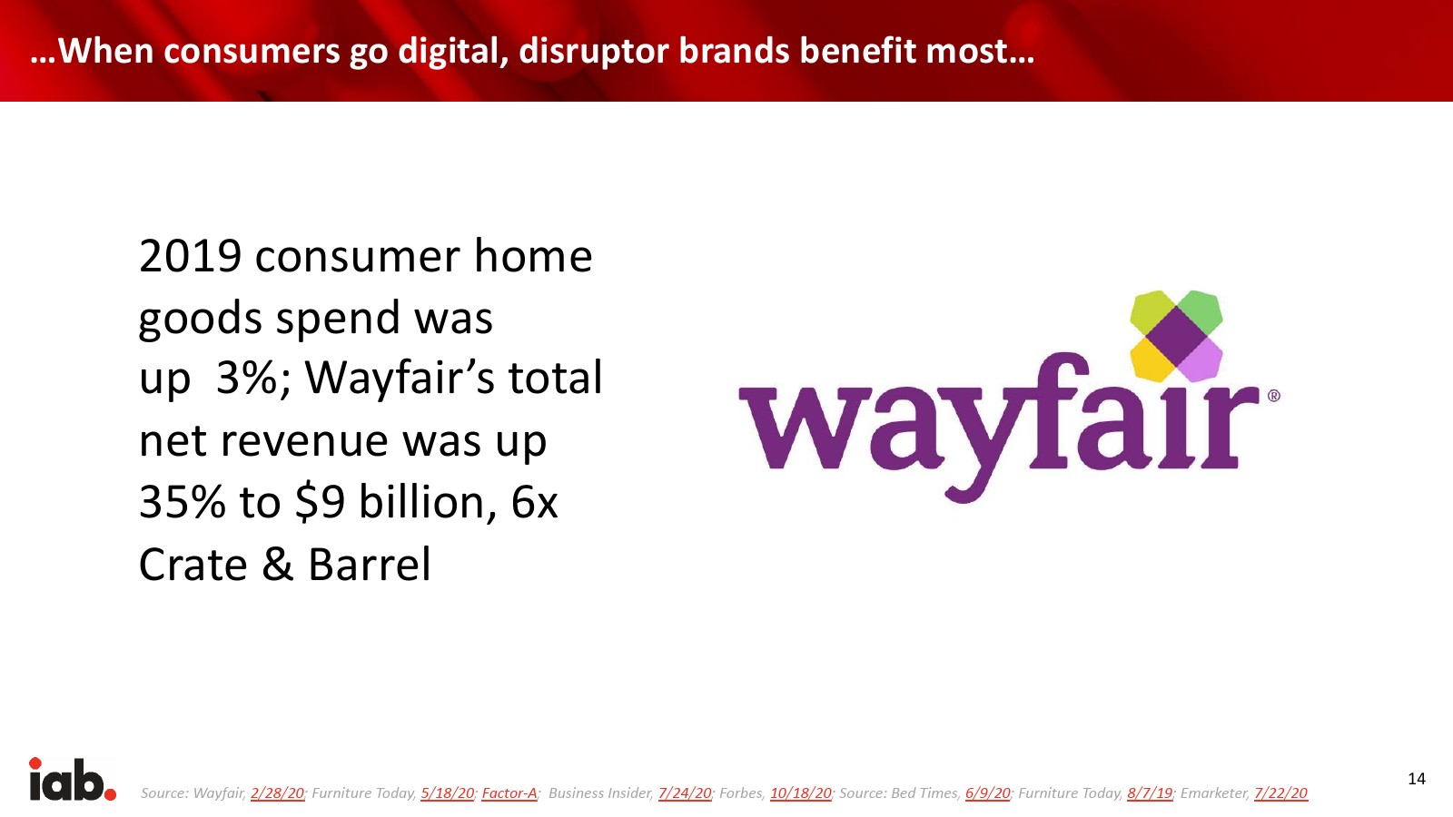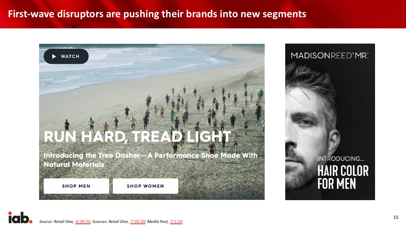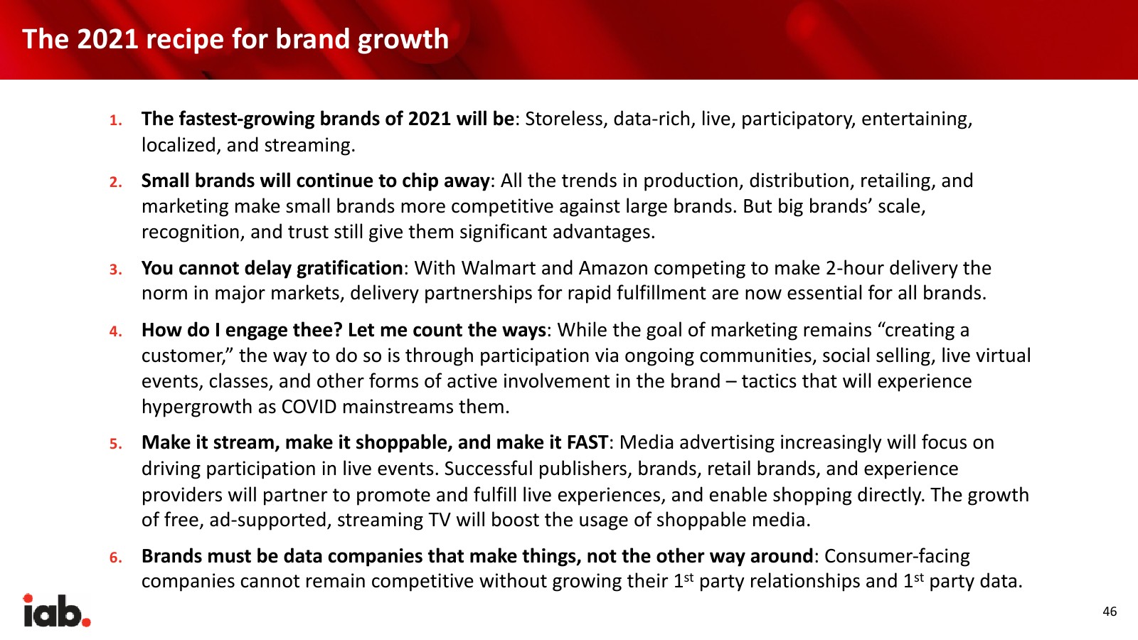 IAB发布了“2021年品牌颠覆报告”。隔离期的8个月加速了美国向“无存储”直接品牌经济(Direct Brand Economy)的过渡,比大流行前的速度快了5倍。