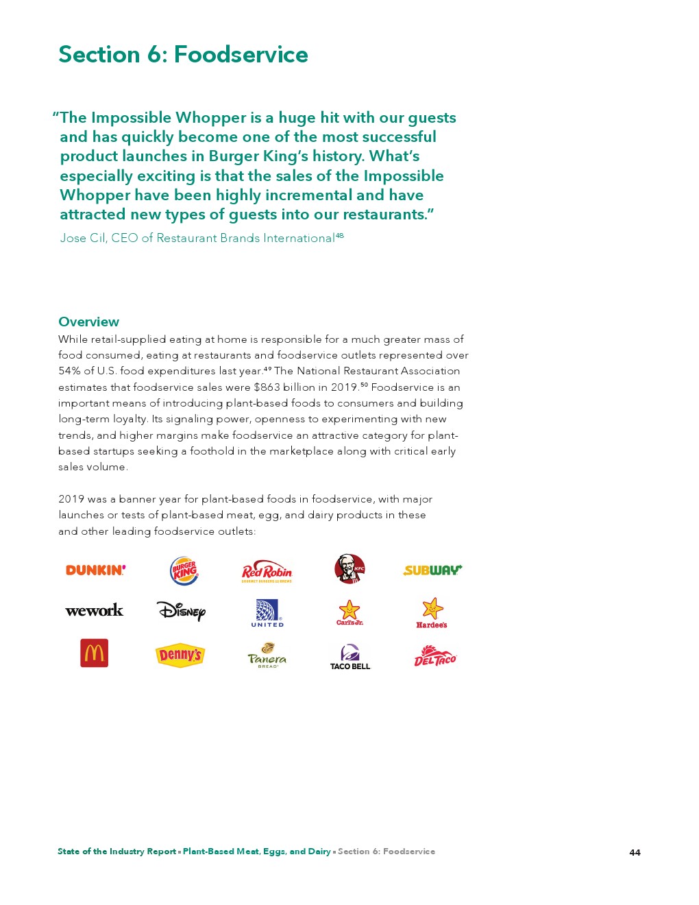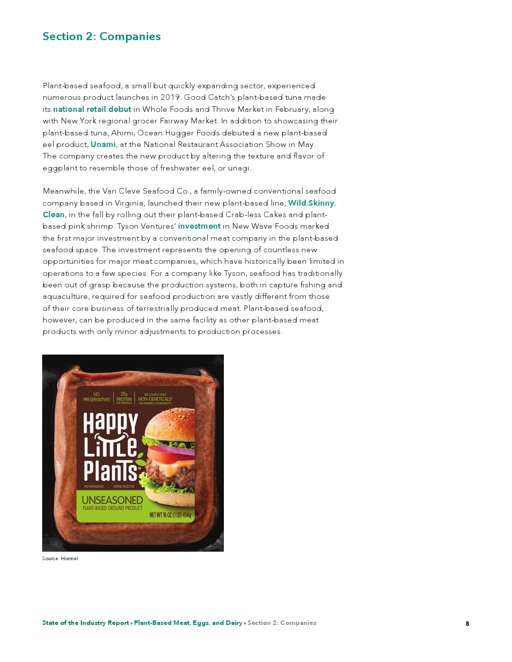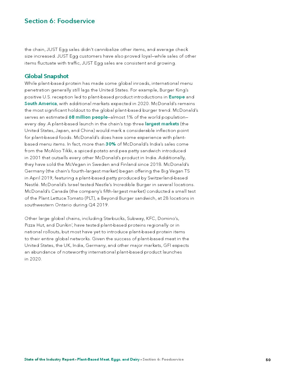 美食协会(The Good Food Institute)发布了“2019年替代肉、蛋、奶行业报告”,提供了植物性食品行业的概况,重点介绍了2019年的主要发展,并预测了2020年及以后的趋势。