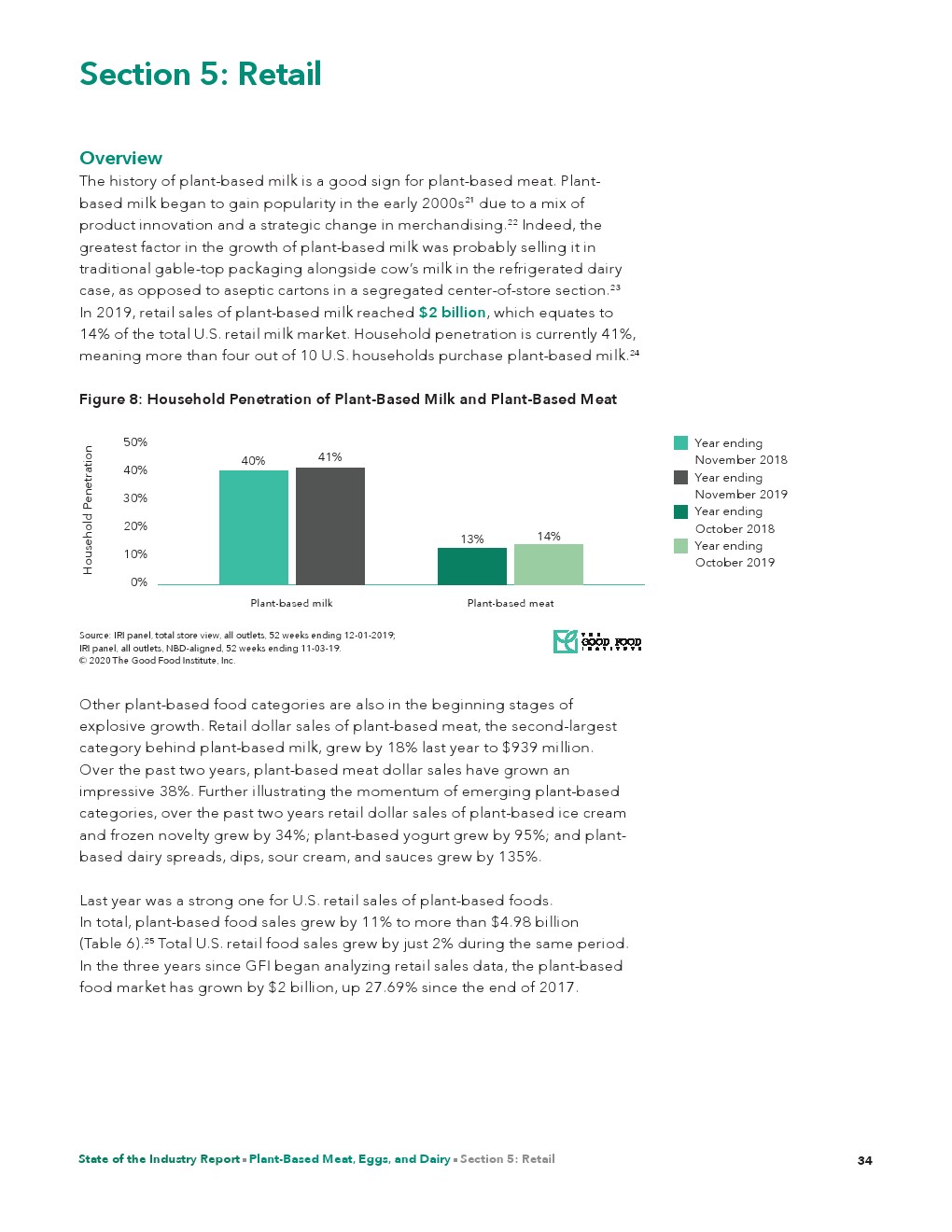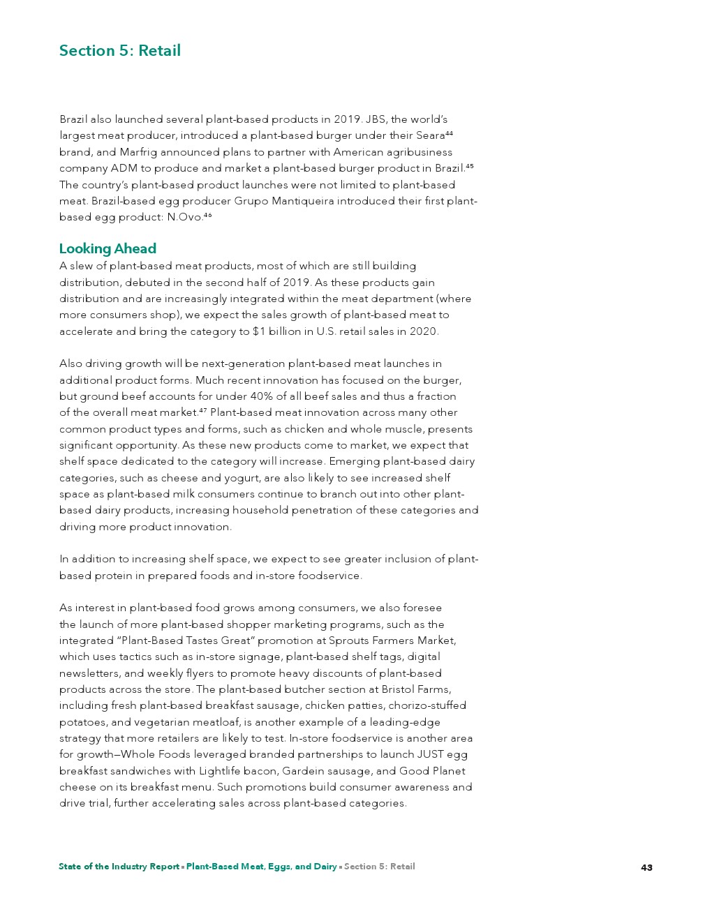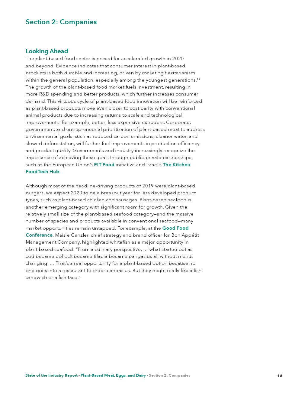 美食协会(The Good Food Institute)发布了“2019年替代肉、蛋、奶行业报告”,提供了植物性食品行业的概况,重点介绍了2019年的主要发展,并预测了2020年及以后的趋势。
