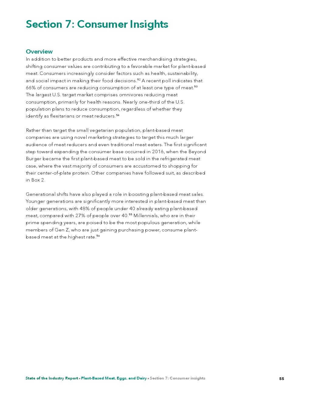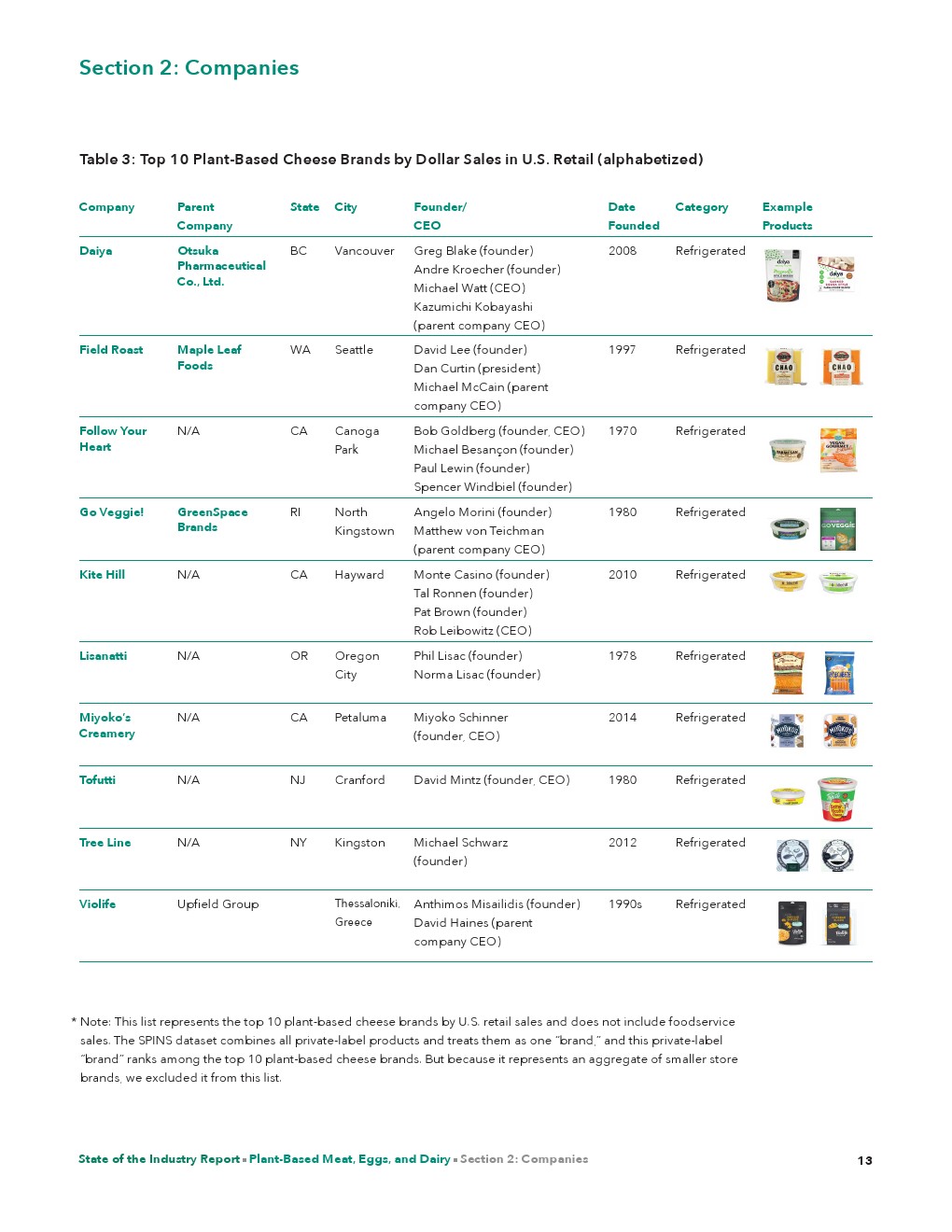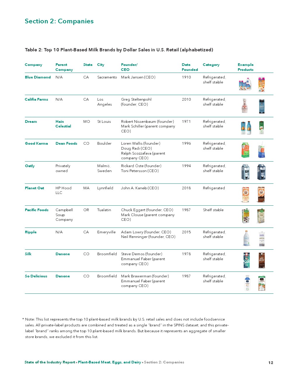 在这三个类别中,有几个基于工厂的品牌。Field Roast是植物性肉类和植物性奶酪产品中最畅销品牌之一。植物性肉类和植物性奶制品十强中还有一些较小的品牌,例如WestSoy和Pacific Natural。未来,随着品牌希望通过补充产品,扩展产品组合,可能会出现更多品牌参与多个类别。