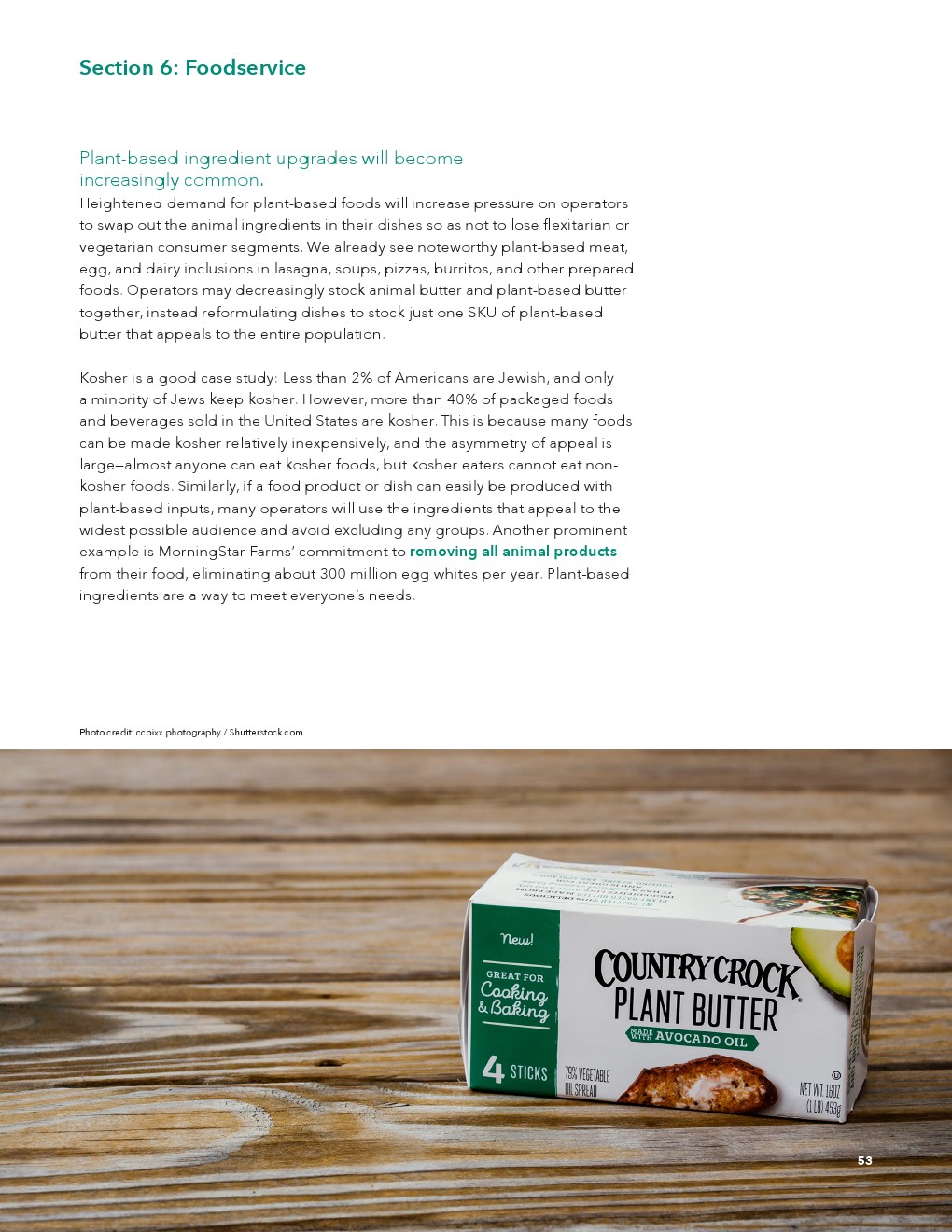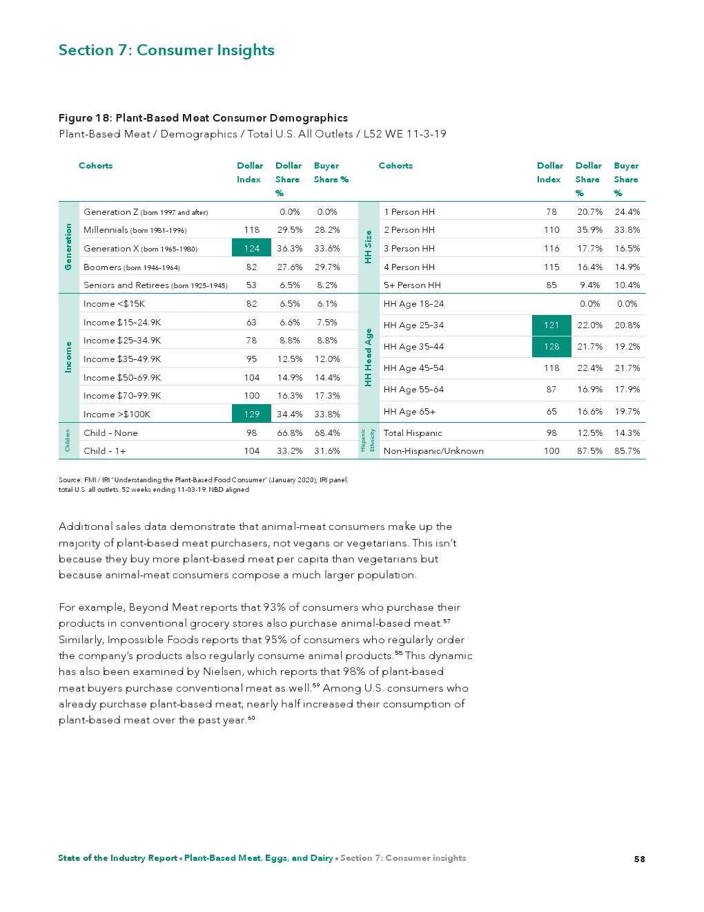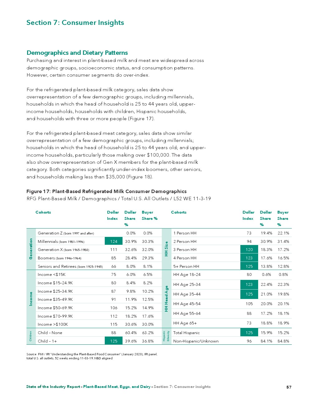 在这三个类别中,有几个基于工厂的品牌。Field Roast是植物性肉类和植物性奶酪产品中最畅销品牌之一。植物性肉类和植物性奶制品十强中还有一些较小的品牌,例如WestSoy和Pacific Natural。未来,随着品牌希望通过补充产品,扩展产品组合,可能会出现更多品牌参与多个类别。
