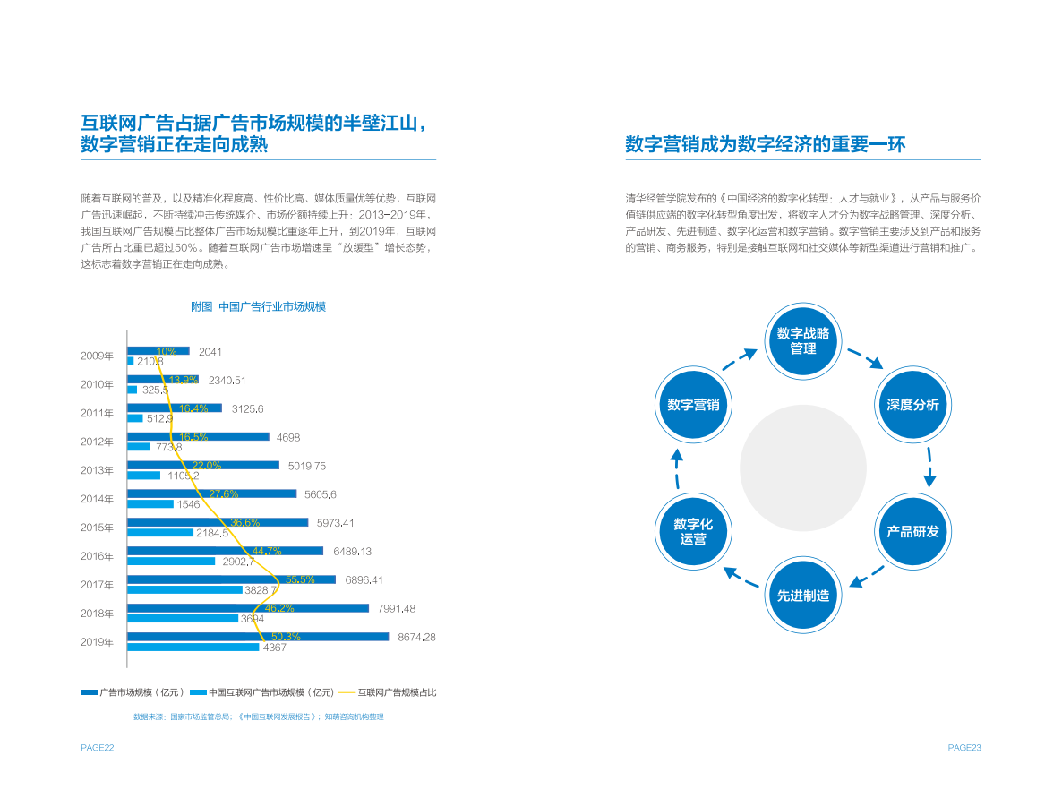 《报告》指出,数字营销已成为数字经济中的重要一环。截至2019年,互联网广告在整体广告市场中的占比已超过50%。伴随行业的蓬勃生长,人才供给“断层”日趋明显,行业人才缺口持续扩大。
