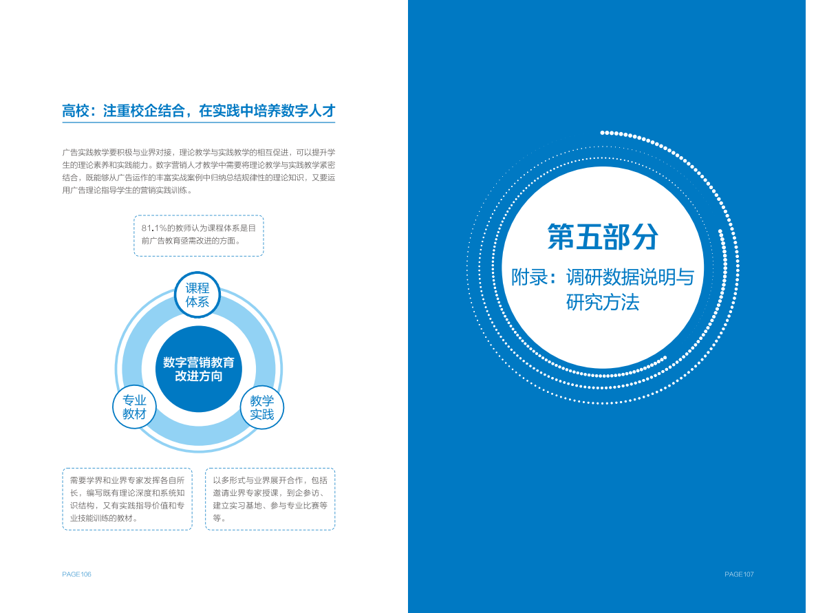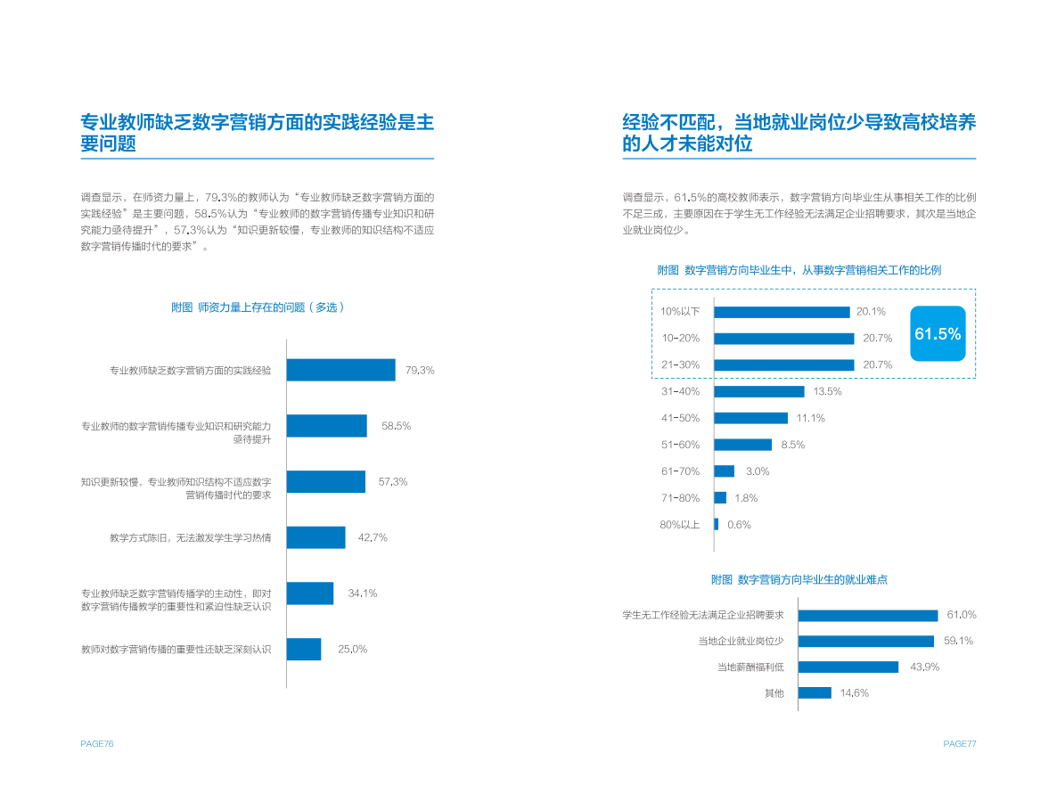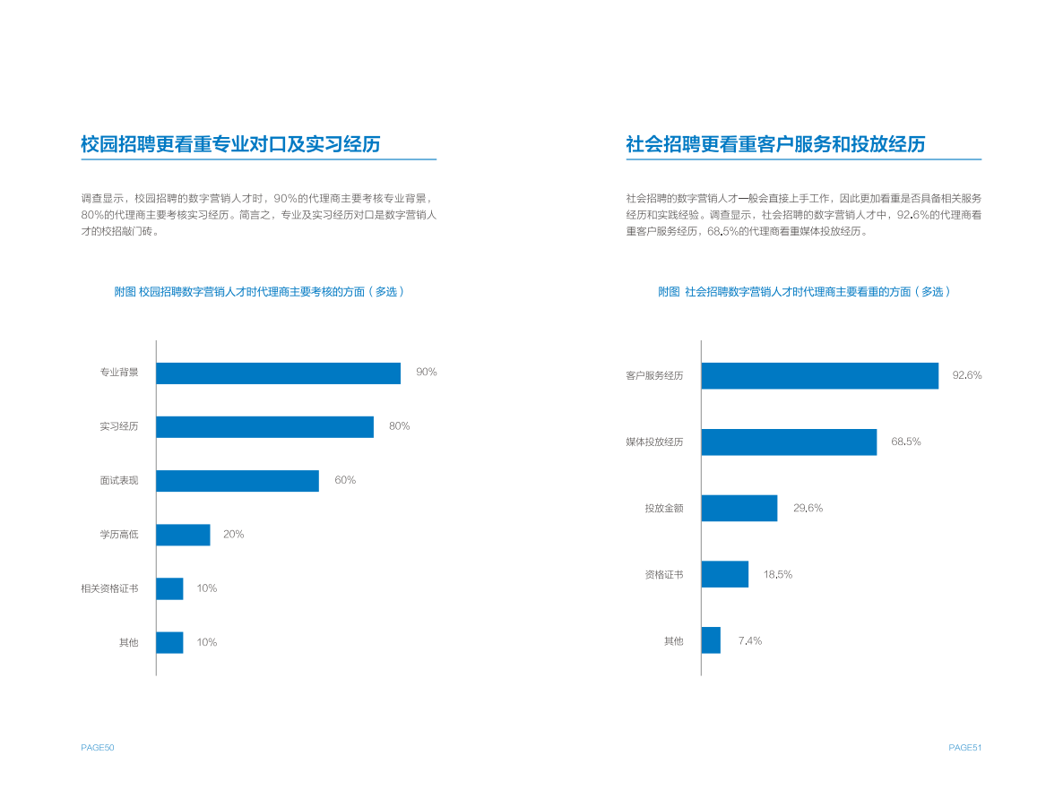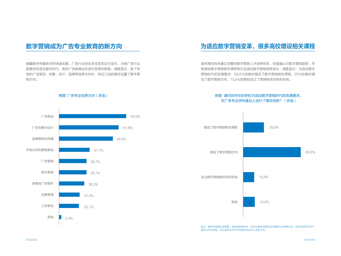 高校方面,作为数字营销人才的重要供给侧,大部分设有广告专业的高校都已细分出数字营销方向,并设置相关课程。但在课程占比、师资力量等方面,尚无法完全匹配行业需求,同时存在缺少实践平台,毕业生经验不能完全满足企业需求的问题。