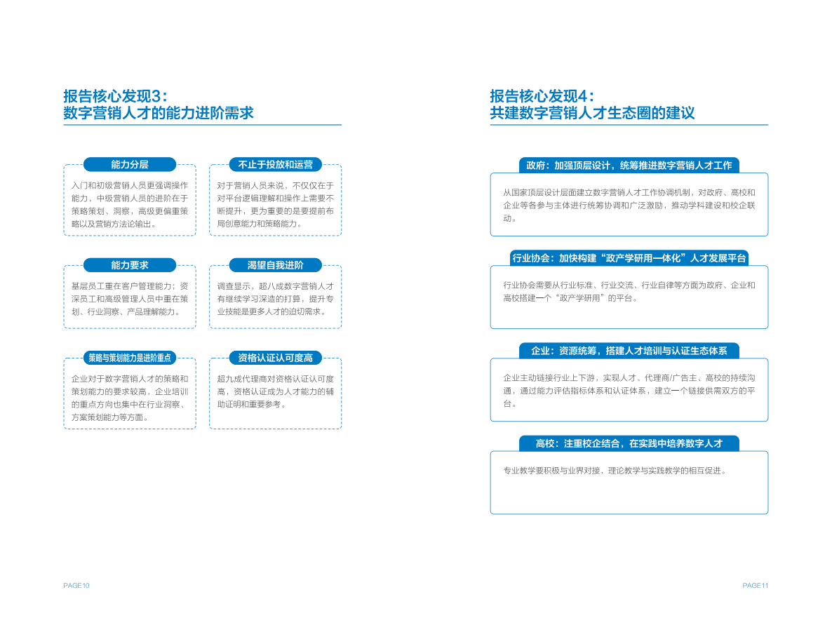 《报告》指出,由于数字营销在媒体类型、媒体技术、评估方式等方面与传统营销存在本质差异,使数字营销人才既要掌握营销通用技能,又必须不断适应数字时代的变化常态。