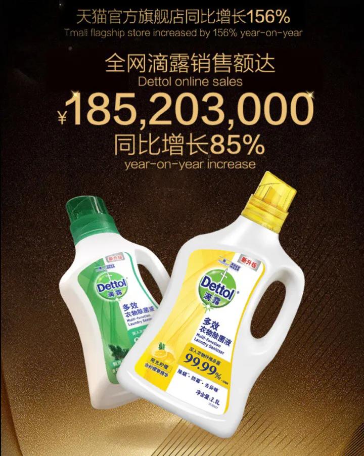 而最终销售达成的效果也相当喜人。除杜蕾斯品牌交出全网销售额突破1.7亿元的答卷外,沿用同一套方法论和操作逻辑的滴露,也轻松斩获全网1.8亿元销售额——其天猫官方旗舰店销售额同比增长更是高达156%。