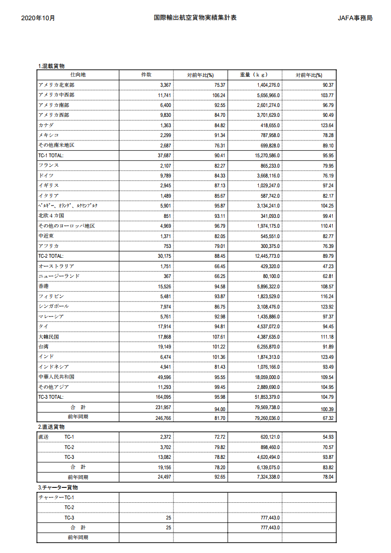 随着中国大陆经济恢复,日本面向中国大陆的航空货运出口量不断增加。一家大型货运企业表示,“手机及5G基础设施用的电子零部件及半导体的出口业绩良好。汽车相关零部件也在增加”。