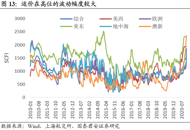 全球供应链在高产能利用率的时候出现“紊乱”,将继续加大运价的波动性。短期的运价上涨的概率大于下跌的概率,且弹性很大,但是持续性却比“补库”更加无法预测。