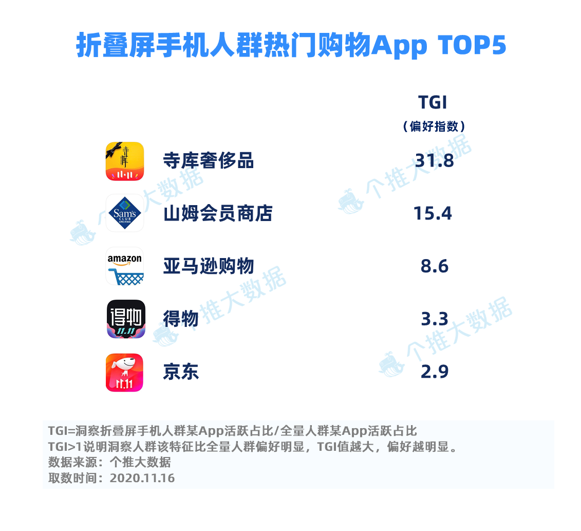 折叠屏手机因柔性屏工艺复杂而无法大规模生产,在价格和数量上都比较小众。每日互动个推大数据对折叠屏手机用户进行了洞察,发布首份折叠屏手机用户画像,从用户基础画像、兴趣特征和APP偏好等维度洞察这群“小众”人士的特点。